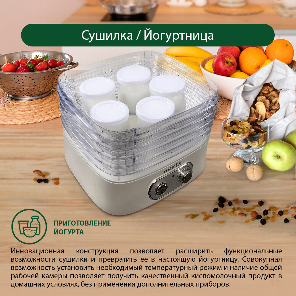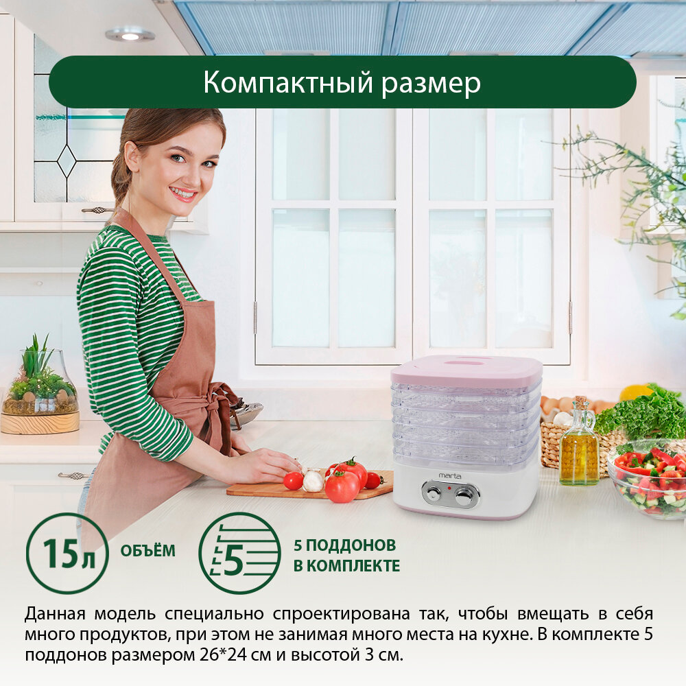 Электросушилка MARTA MT-1945 5 поддонов белый/розовый интересное: