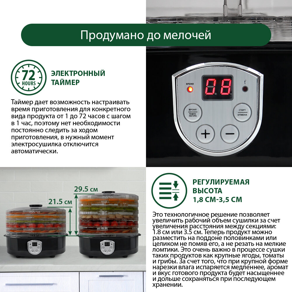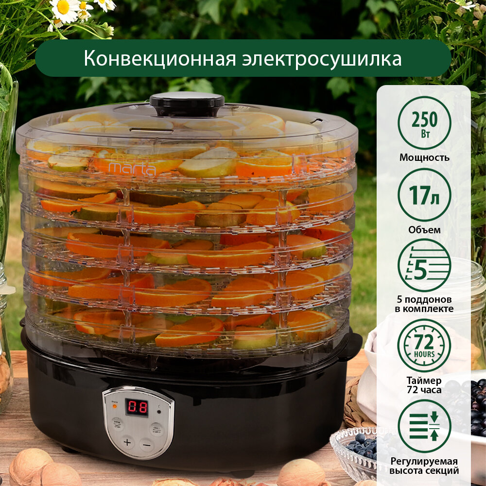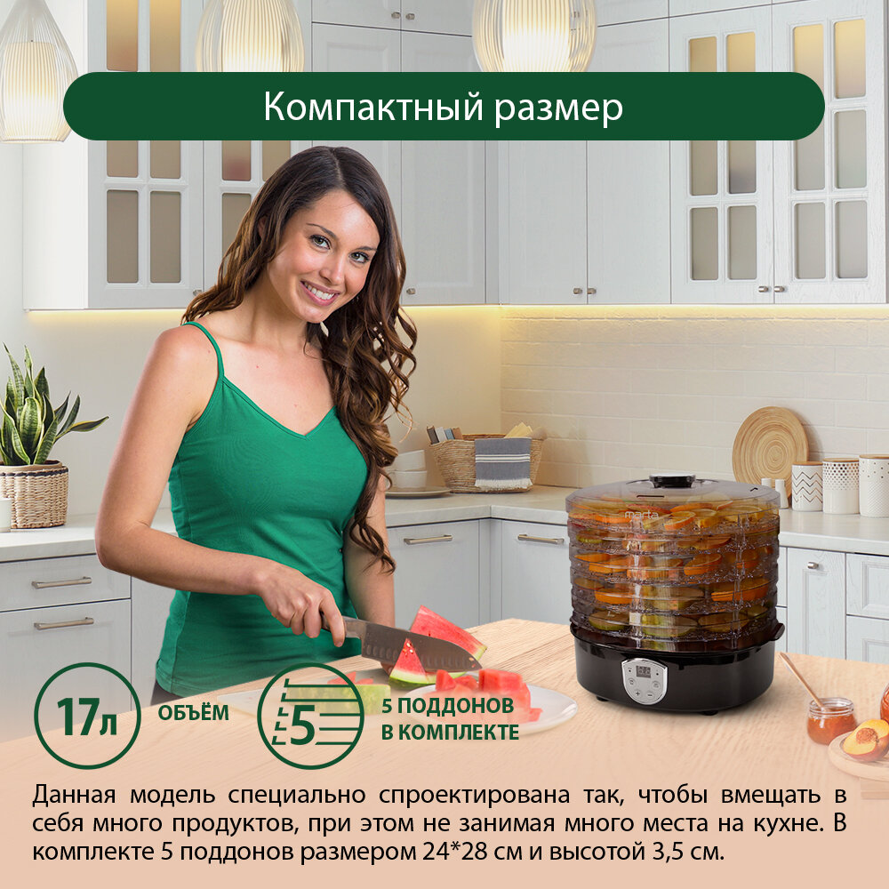 MARTA MT-1951 черный жемчуг сушилка д/фруктов,овощей интересное: