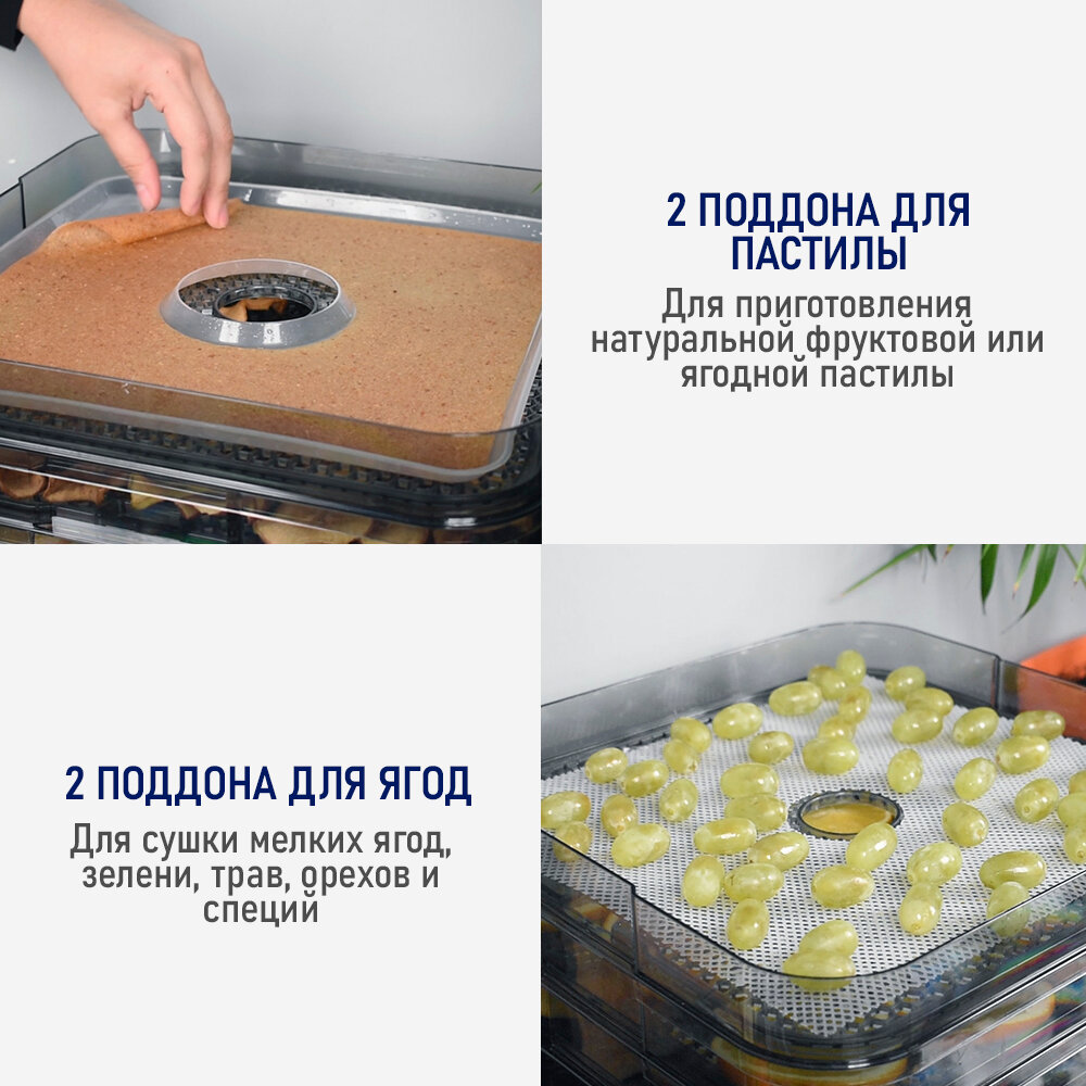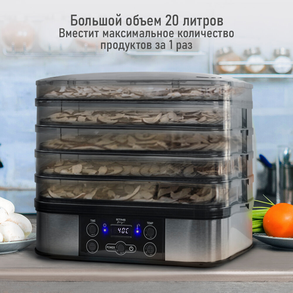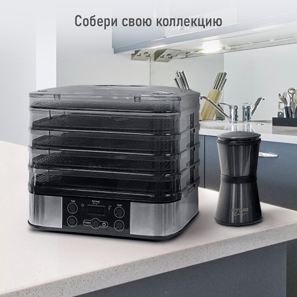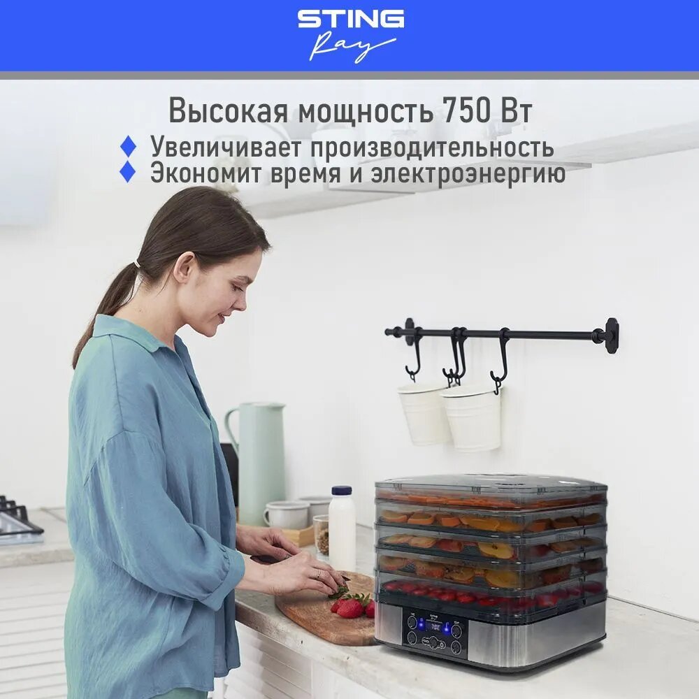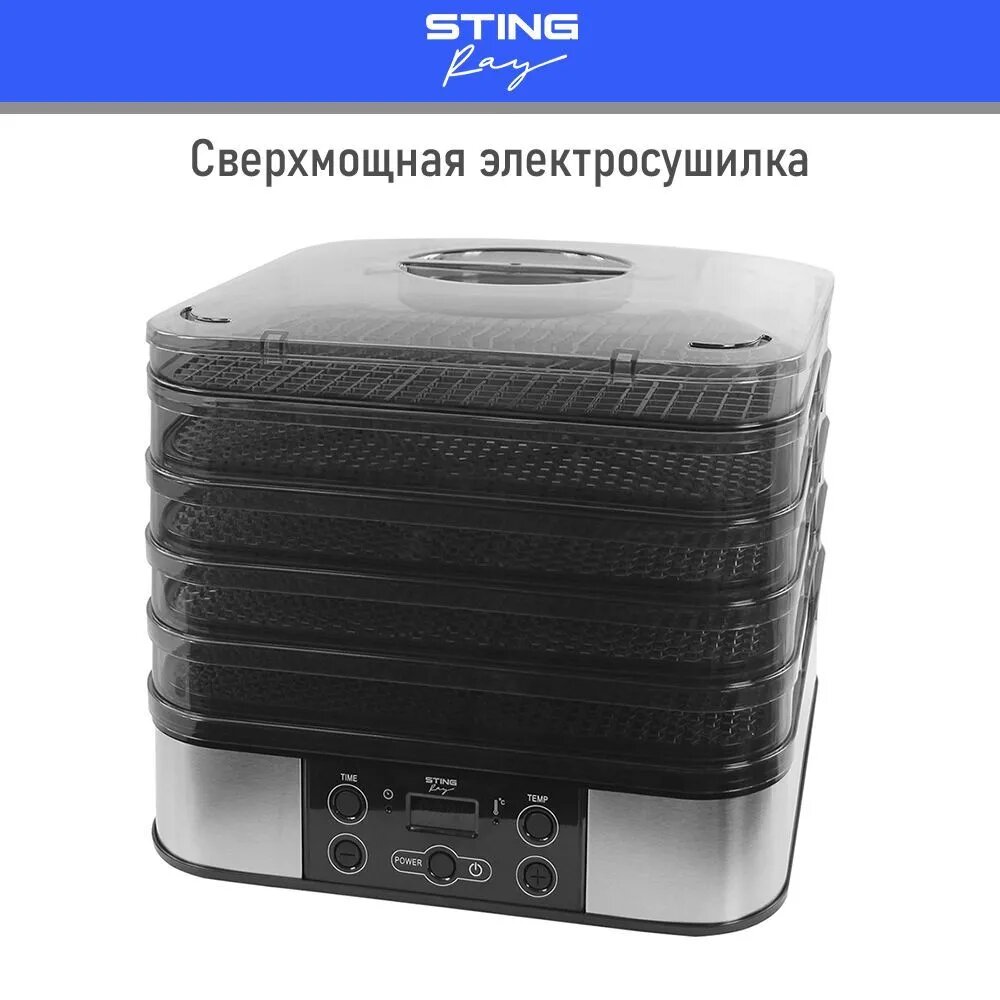 Электросушилка STINGRAY ST-FD700B 9 поддонов: 4 разборных поддона для сушки, 1 обычный поддон, 2 для ягод, 2 для пастилы черный жемчуг интересное: