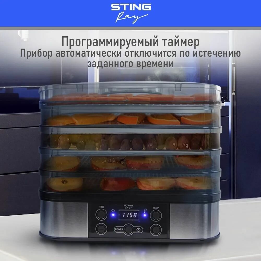 Купить Электросушилка STINGRAY ST-FD700B 9 поддонов: 4 разборных поддона для сушки, 1 обычный поддон, 2 для ягод, 2 для пастилы черный жемчуг