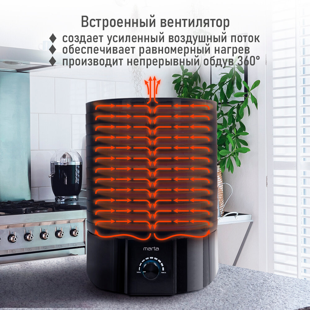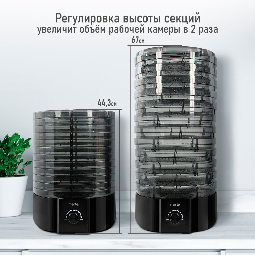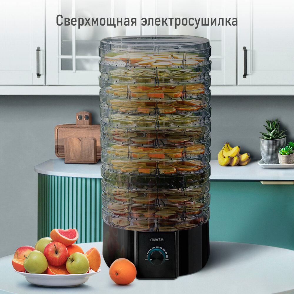 Электросушилка MARTA MT-FD1889H 14 поддонов (12+1 для пастилы+1 для ягод) черный жемчуг интересное: