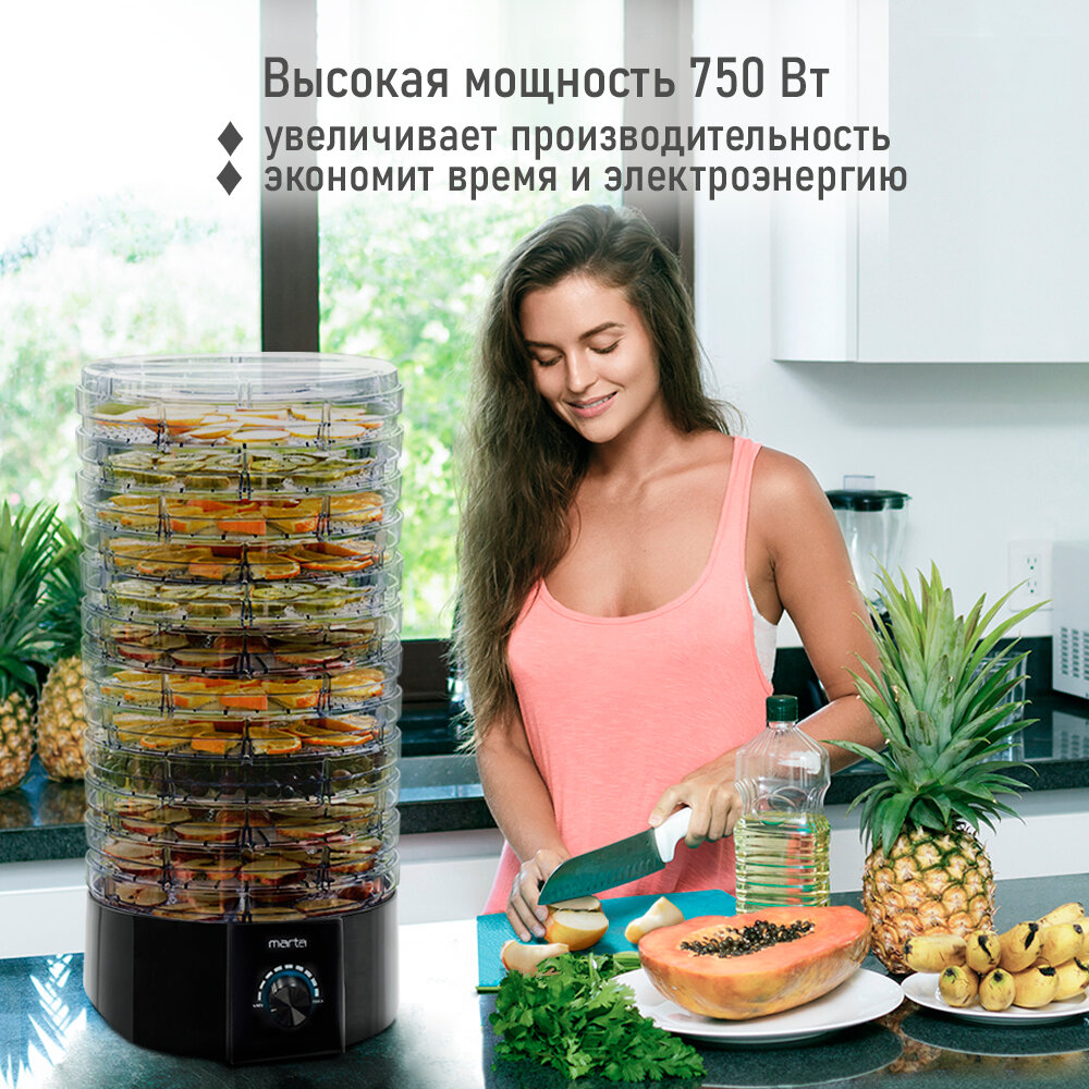 Купить Электросушилка MARTA MT-FD1889H 14 поддонов (12+1 для пастилы+1 для ягод) черный жемчуг
