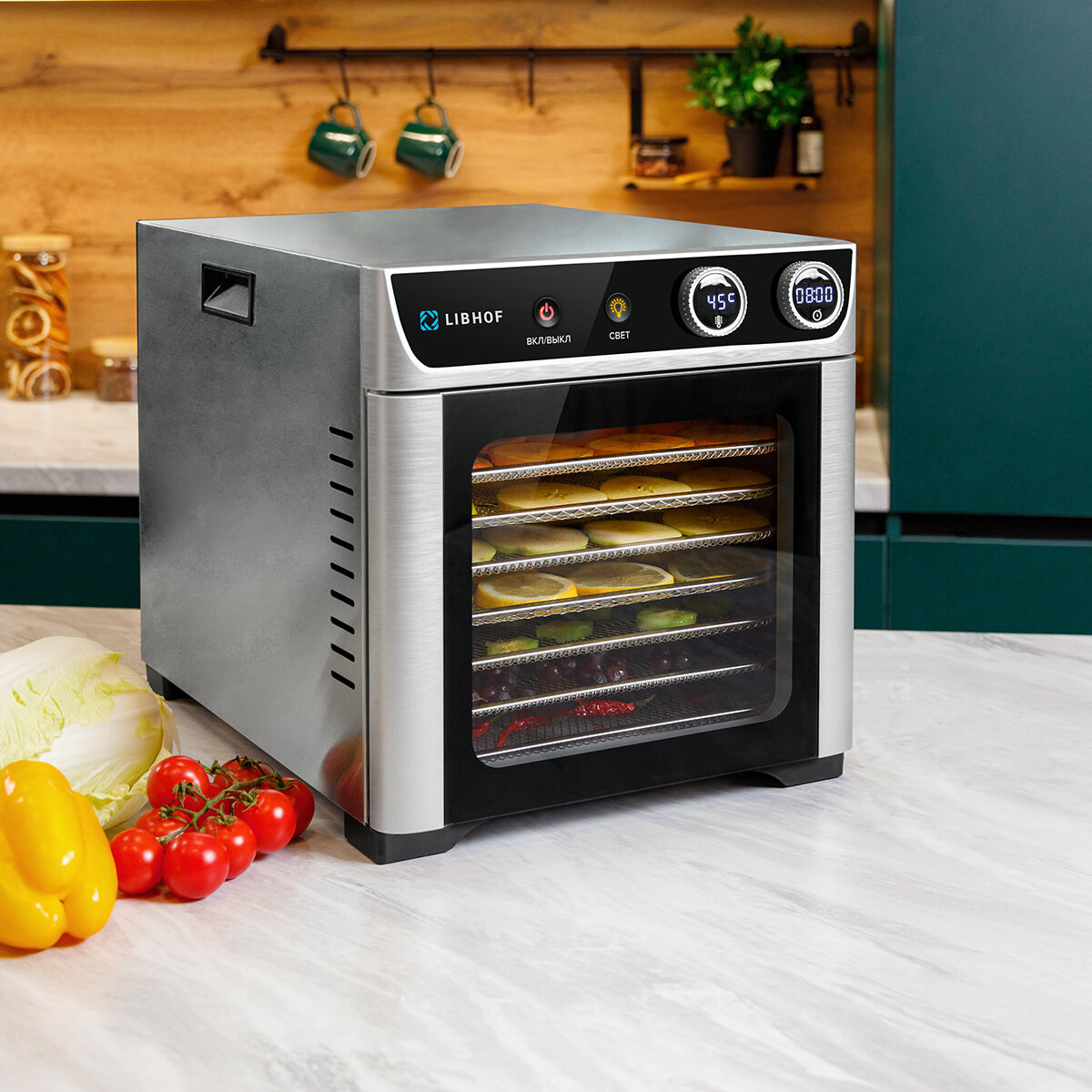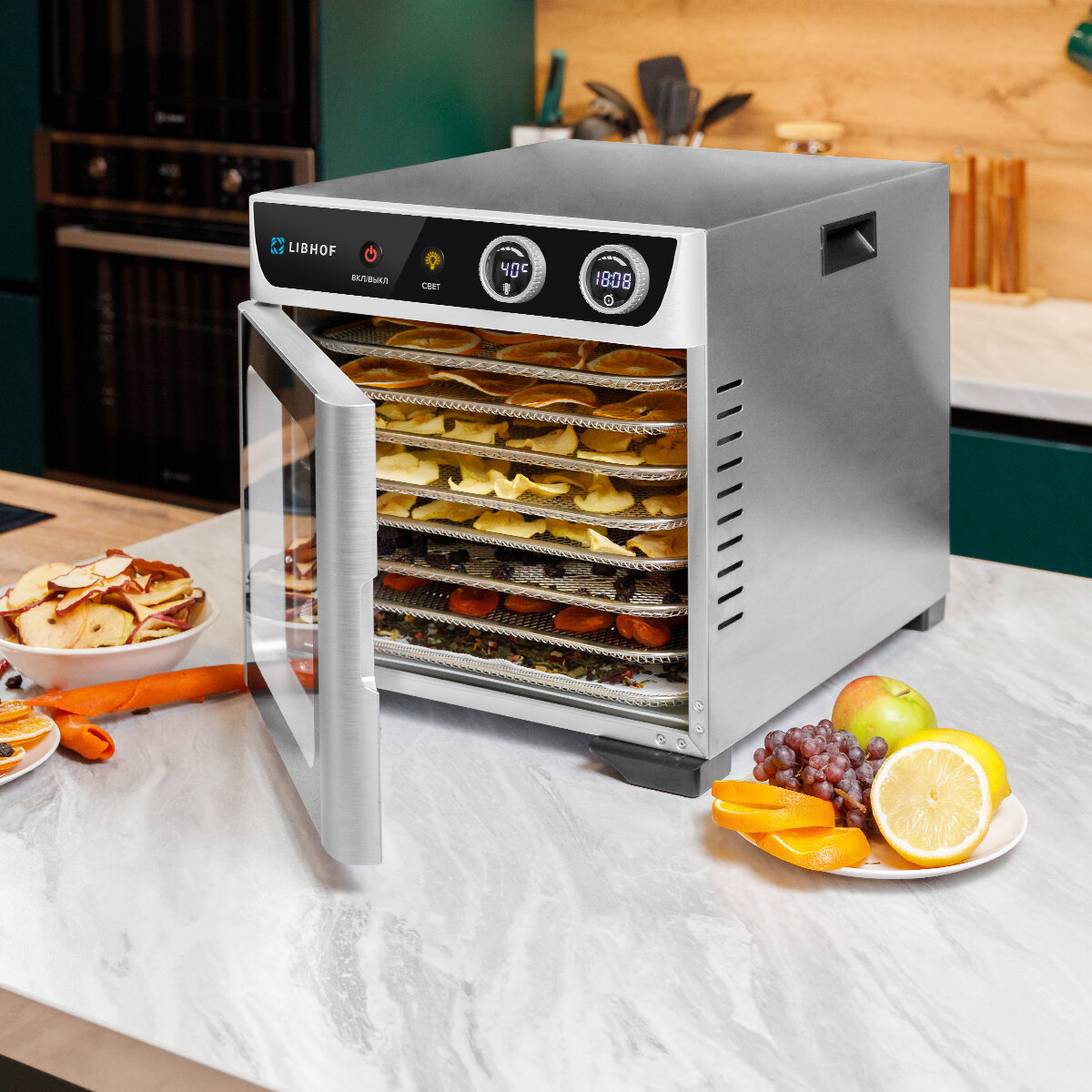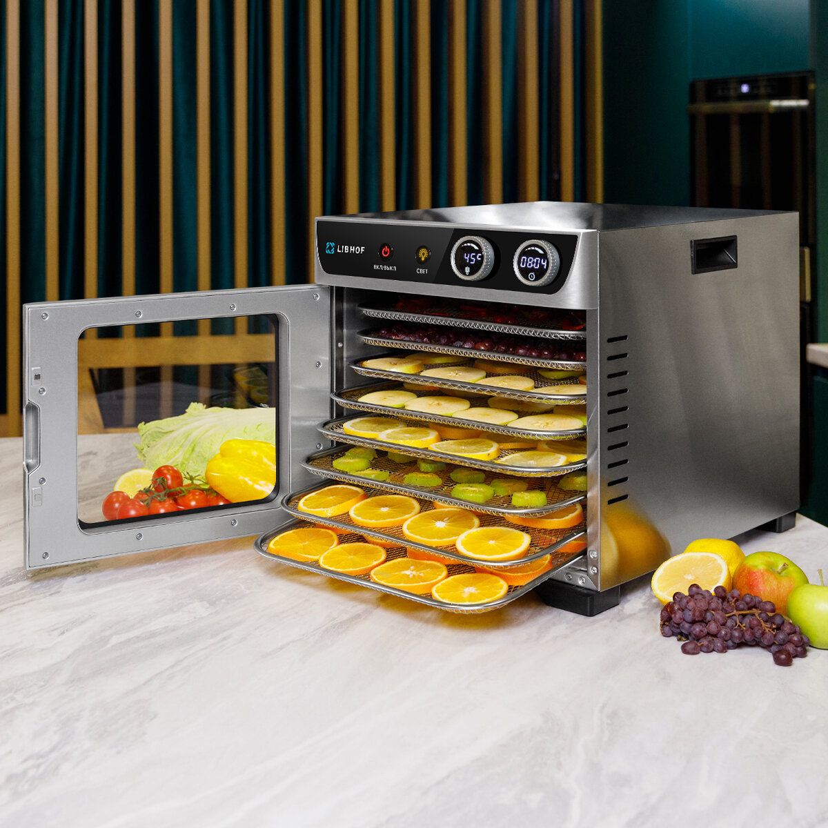 Сушилка для овощей и фруктов Libhof FDW-08 / 8 поддонов интересное: