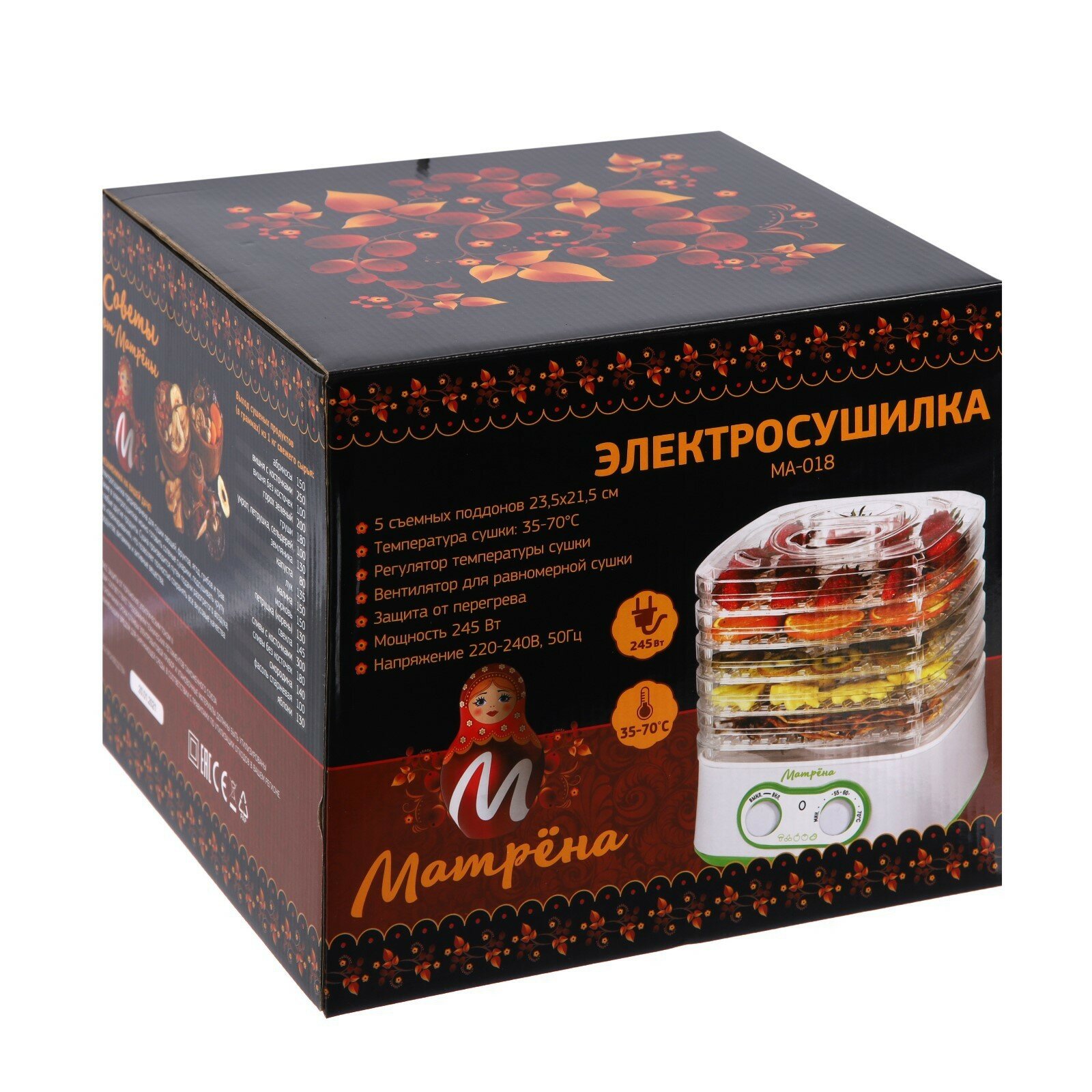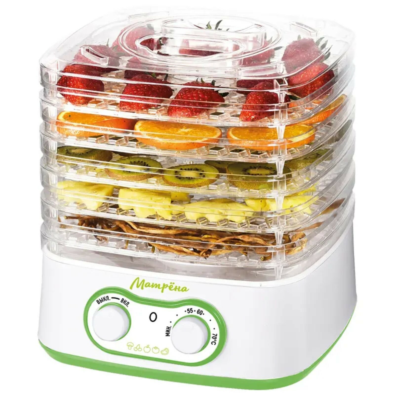 Сушилка для овощей и фруктов МА-018, 245 Вт, 5 ярусов, бело-зелёная интересное: