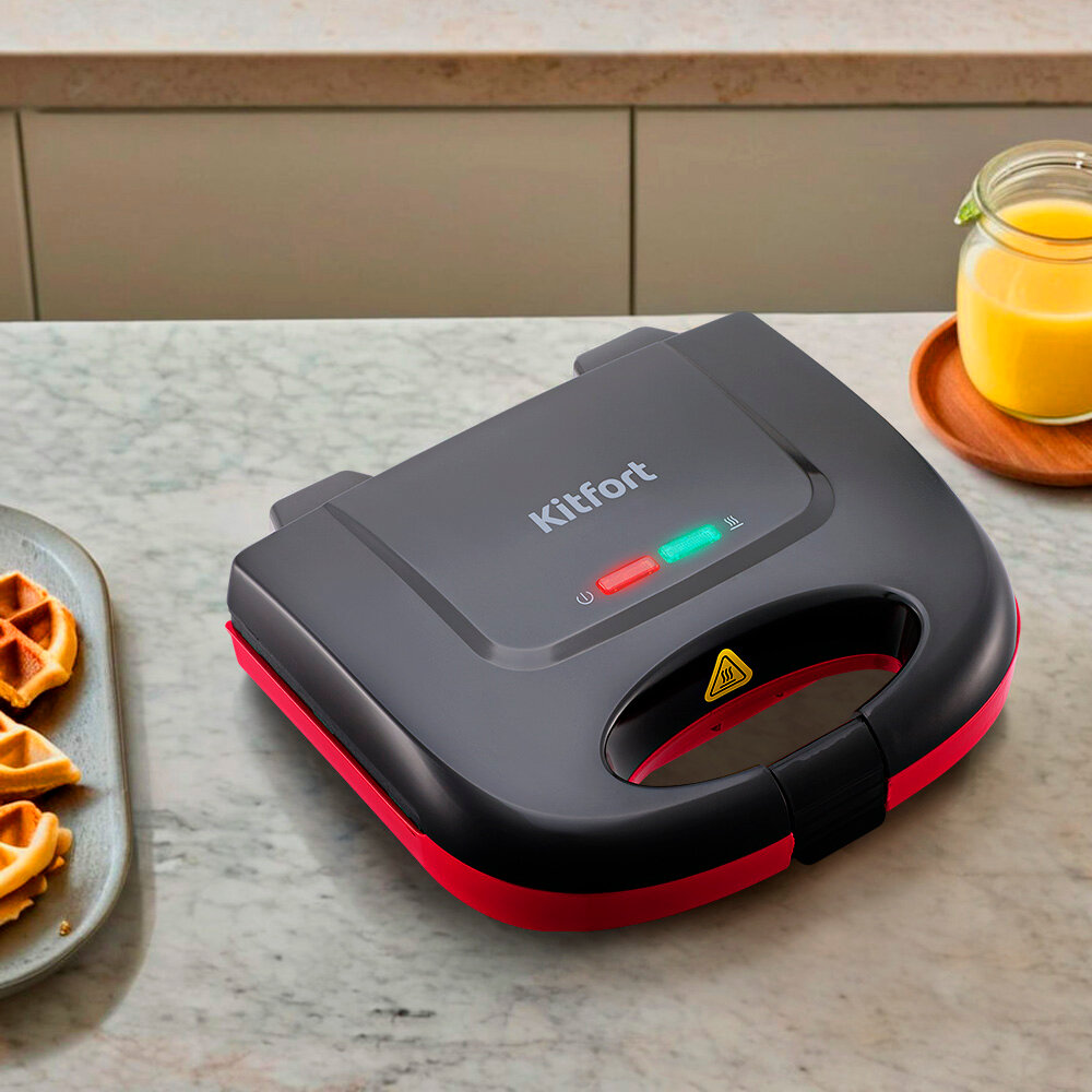 Электрическая вафельница Kitfort КТ-3659, для бельгийских вафель, мощность 750Вт, красно-черная