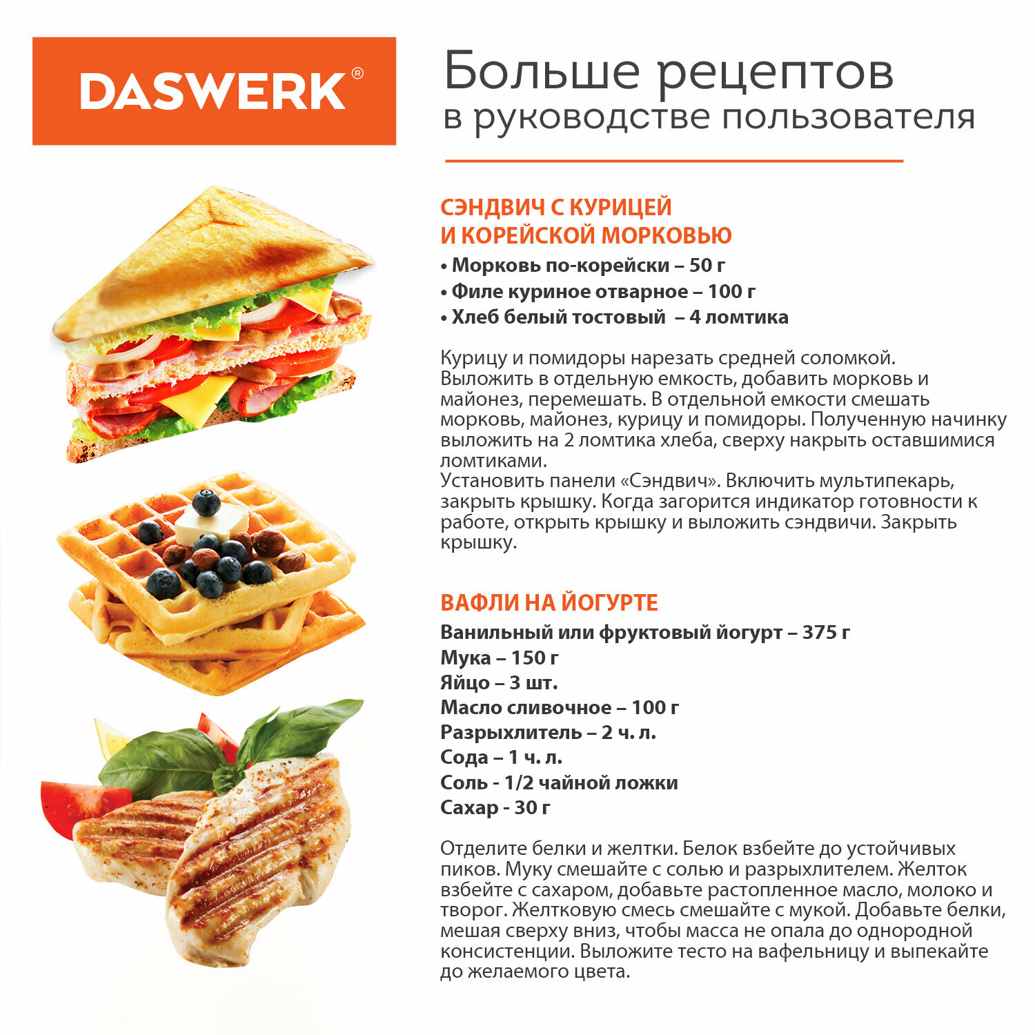 Мультипекарь электрический 3 в 1, вафельница/гриль/сэндвич, 3 съемные панели, 750 Вт, DASWERK, MB-1 интересное: