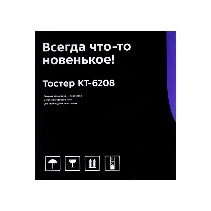 Тостер Kitfort КТ-6208, 850 Вт, 5 режимов прожарки, 2 тоста, чёрно-белый интересное: