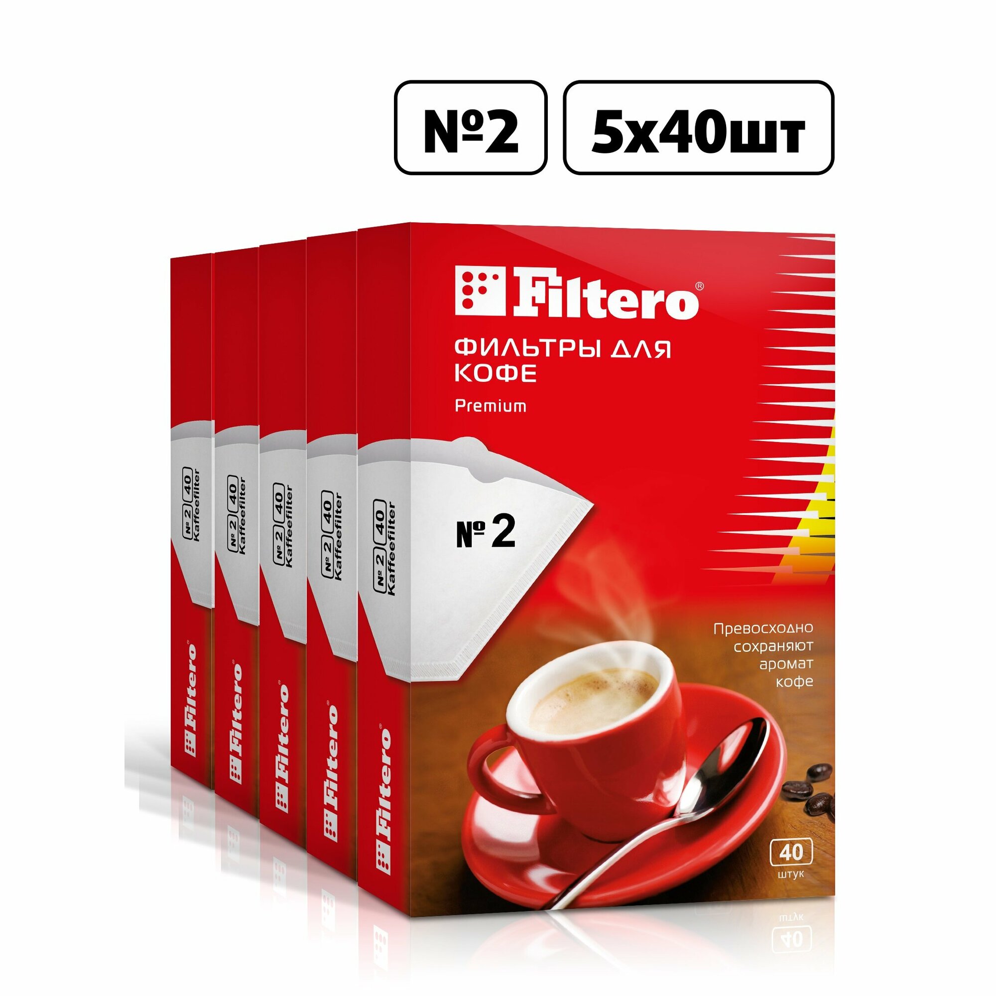 Комплект фильтров для кофе, кофеварки и кофемашин Filtero Premium №2, белые, 40штук