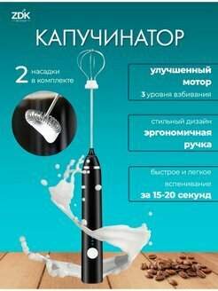 Ручной капучинатор - вспениватель для молока и сливок с двумя венчиками насадками ZDK Double Cappucino интересное: