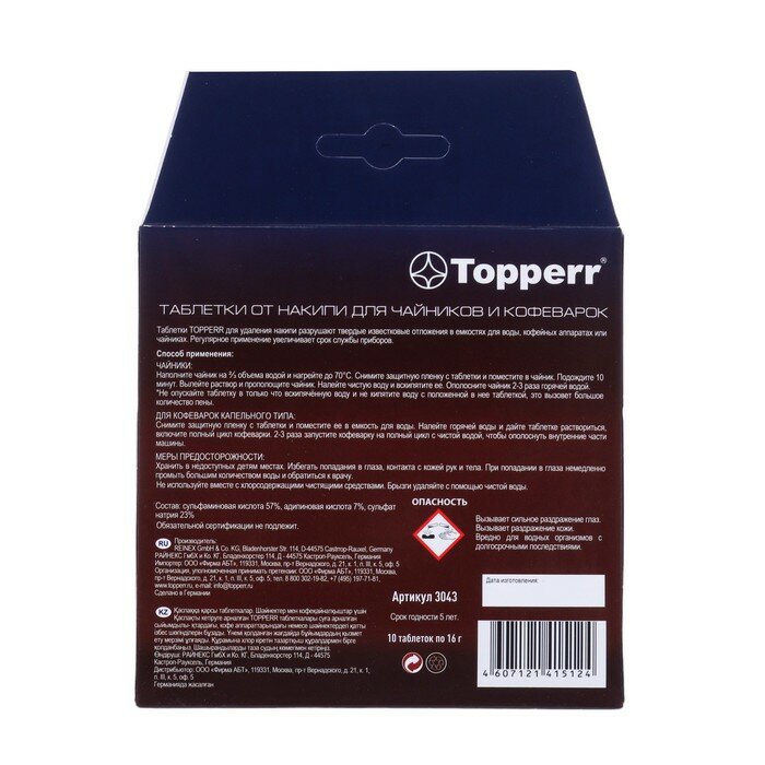 Купить Таблетки от накипи для чайников и кофеварок Topperr, комплект 10 шт