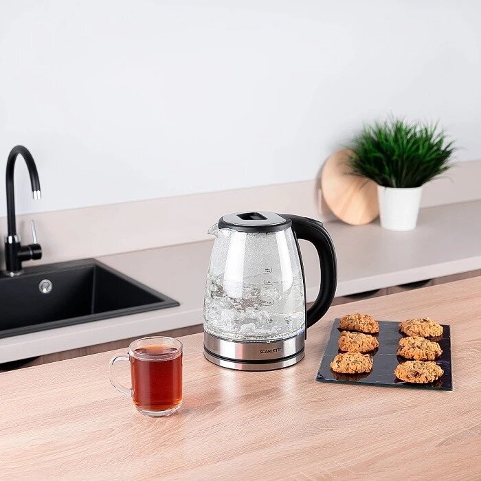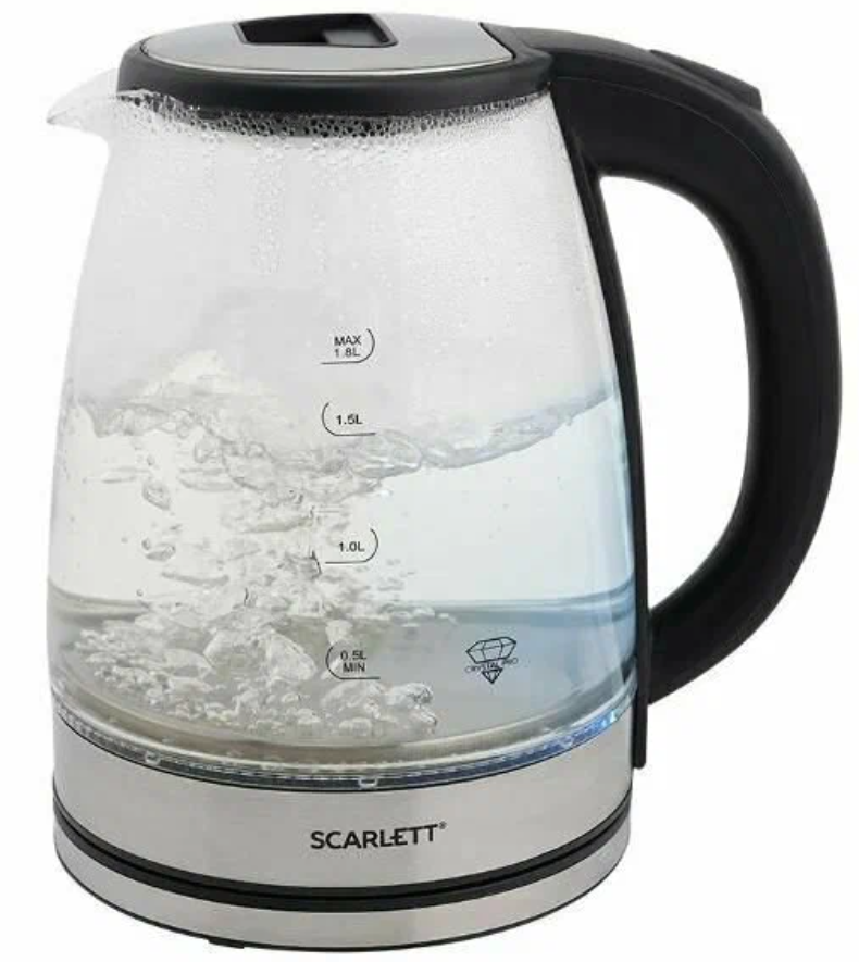 Электрический чайник SCARLETT SC-EK27G30, объем 1.8 л , прозрачный/сталь/черный