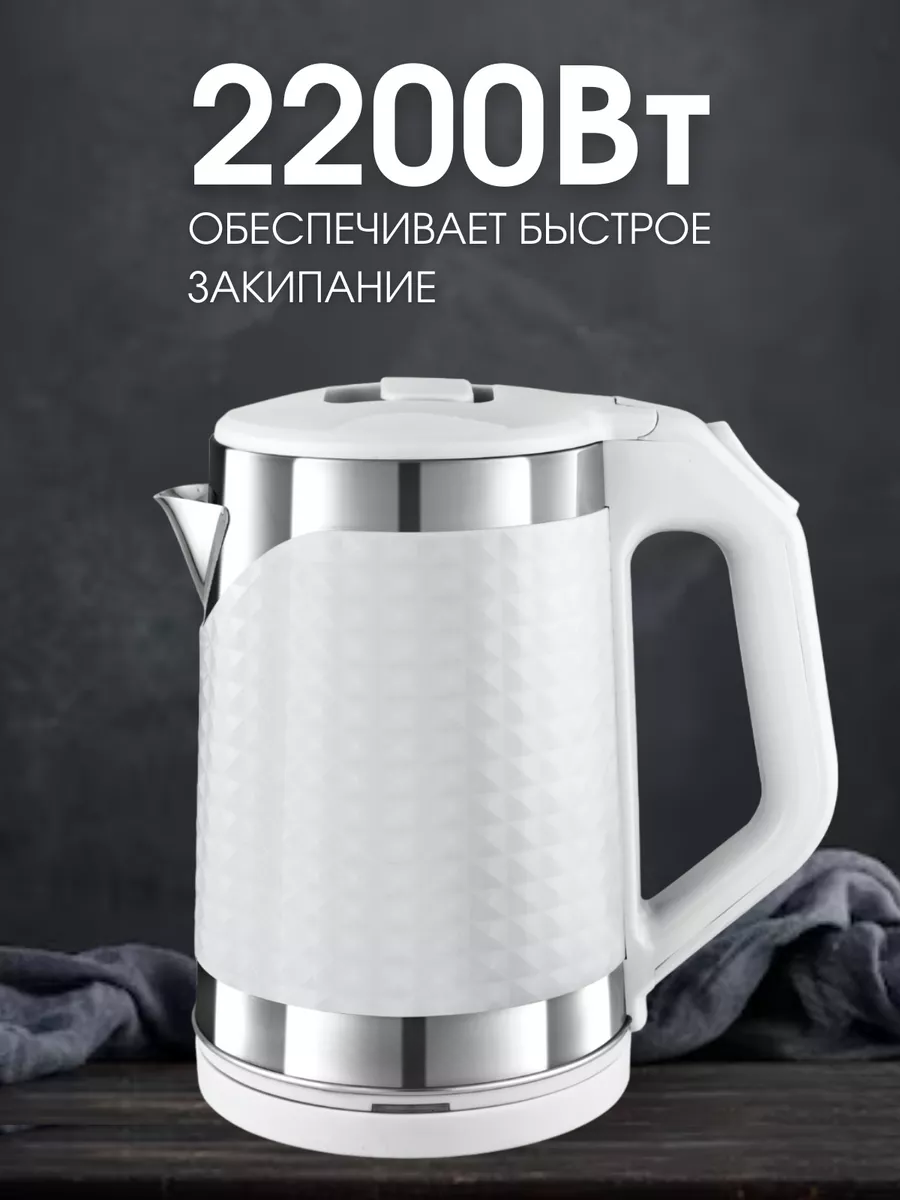 Электрический чайник для воды, чайник электрический 1.8 л, электрочайник мощность 2200Вт, световой индикатор, двойные стенки, белый интересное: