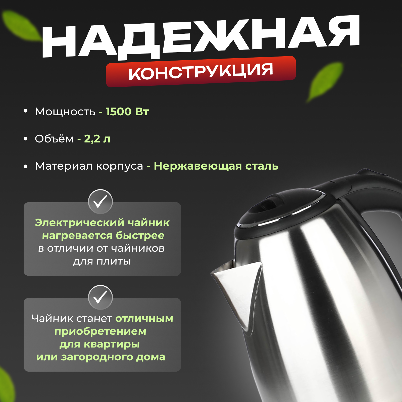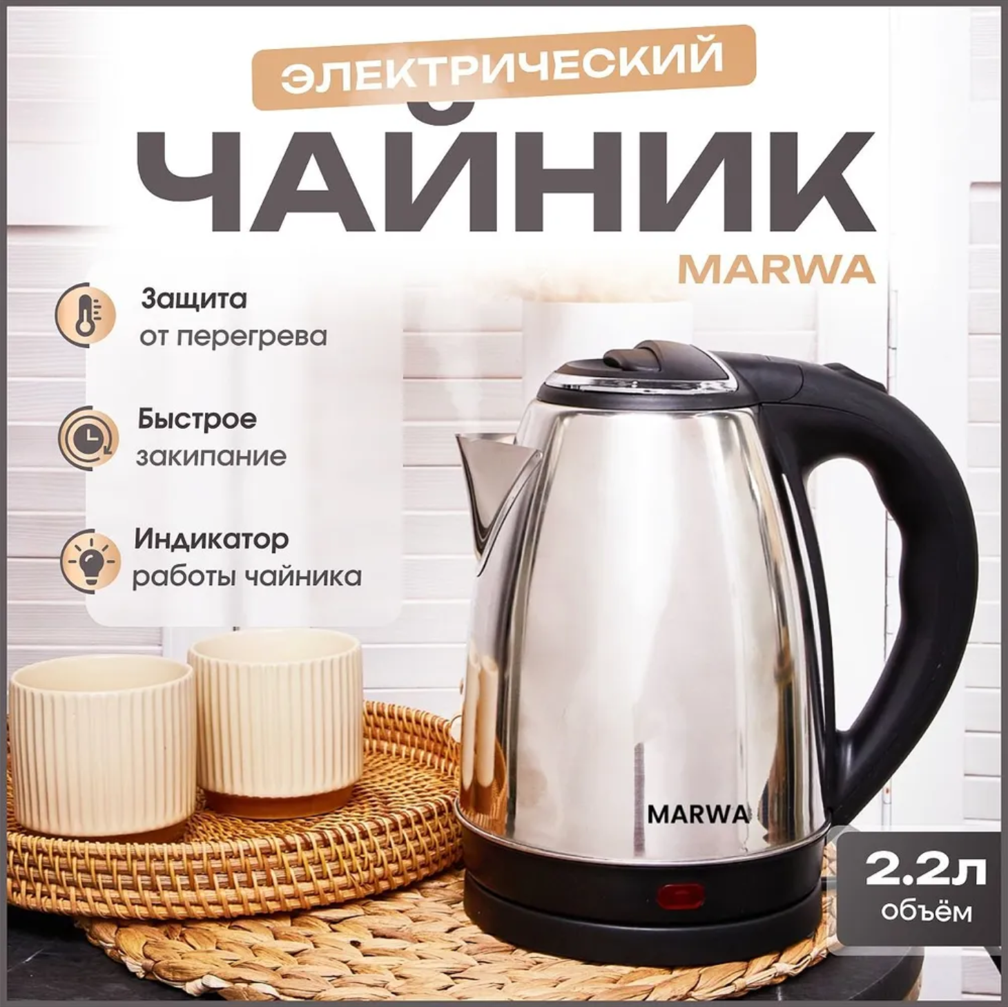 Купить MARWA / Чайник электрический металлический / Электрочайник 2,2 литра 1500 Вт, серебристый