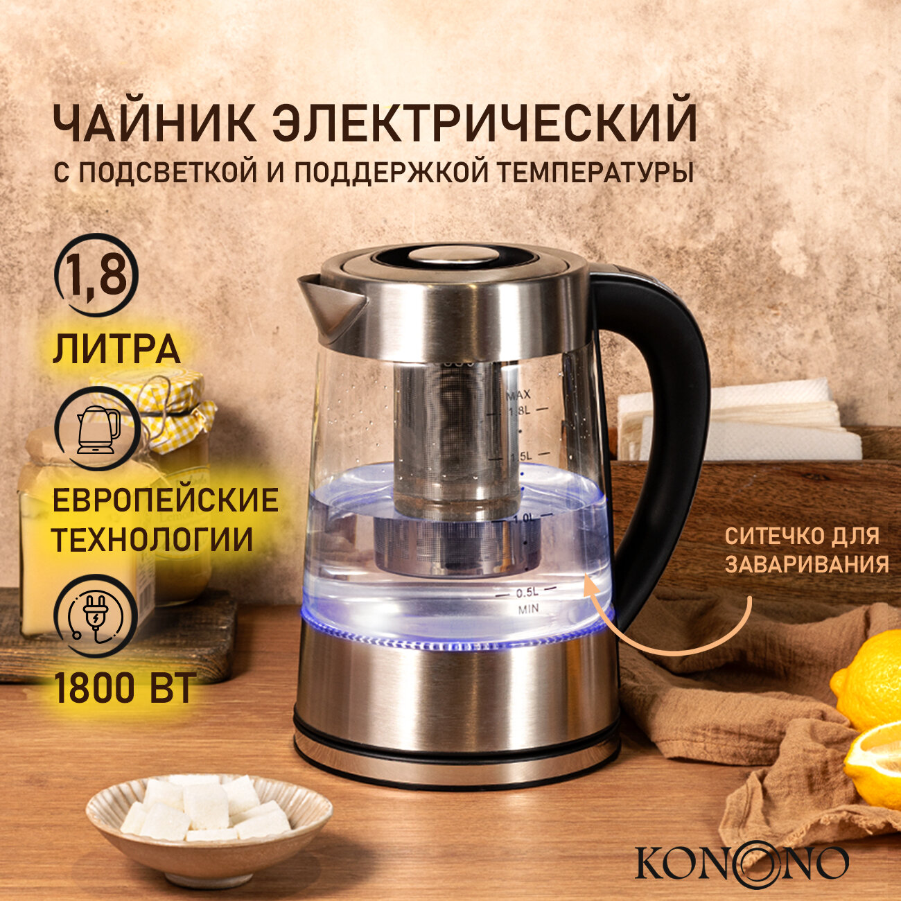 KONONO Чайник электрический для кухни 1,8л с сеткой для заваривания интересное: