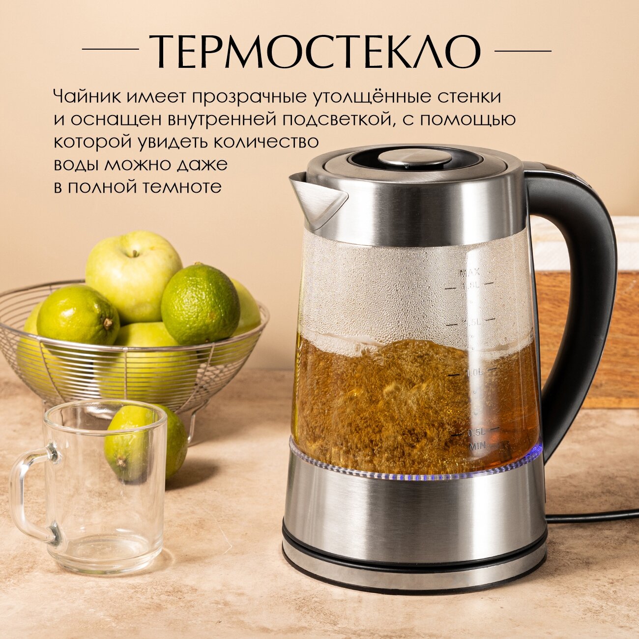 Чайник электрический стеклянный 2 л KONONO для кухни 1800W