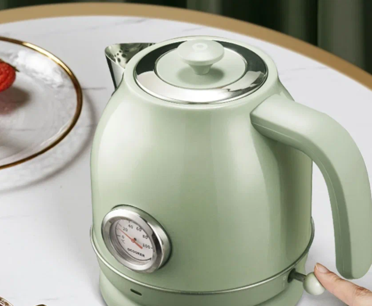 С датчикомЭлектрический чайник Qcooker Retro Electric Kettle (Российская версия), зеленый