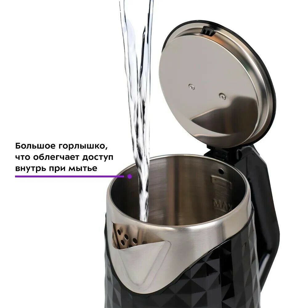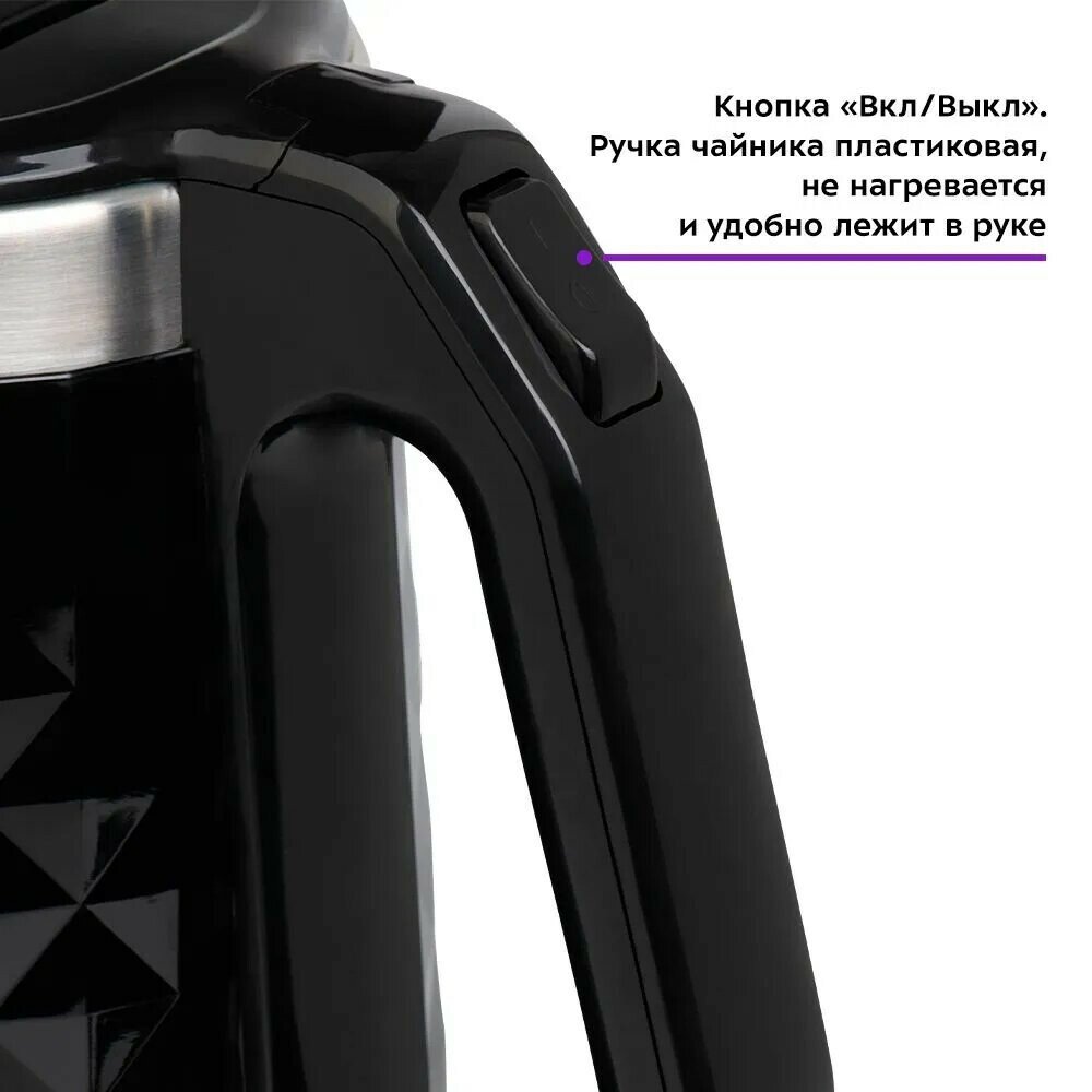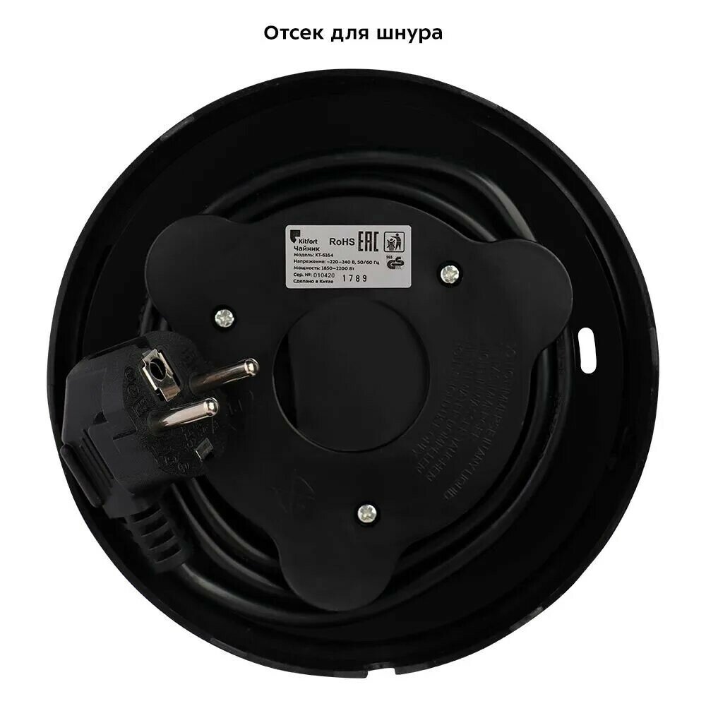 Чайник электрический Kitfort КТ-6173, пластик, колба металл, 1.5 л, 2200 Вт, чёрный