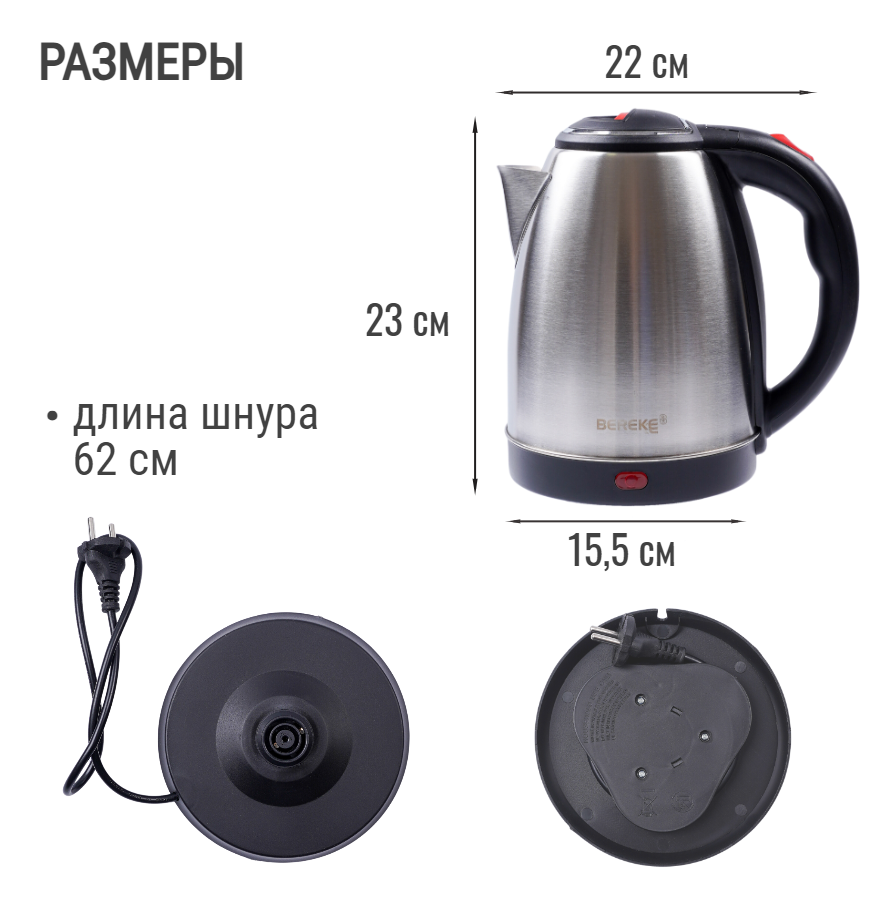 Чайник электрический BEREKE BR-810 2л, 1500Вт интересное:
