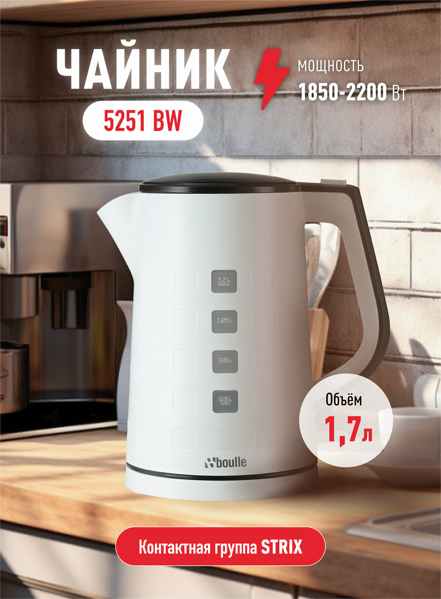 Купить Чайник электрический Boulle 5251 BW 1,7л автоотключение вращение на 360 контроллер STRIX Англия бело-черный