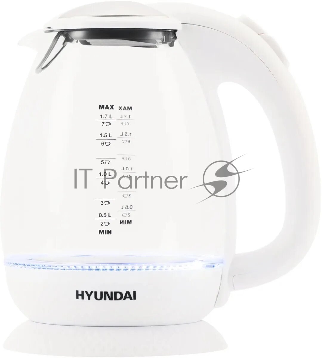Чайник электрический Hyundai HYK-G3805 белый/прозрачный, стекло