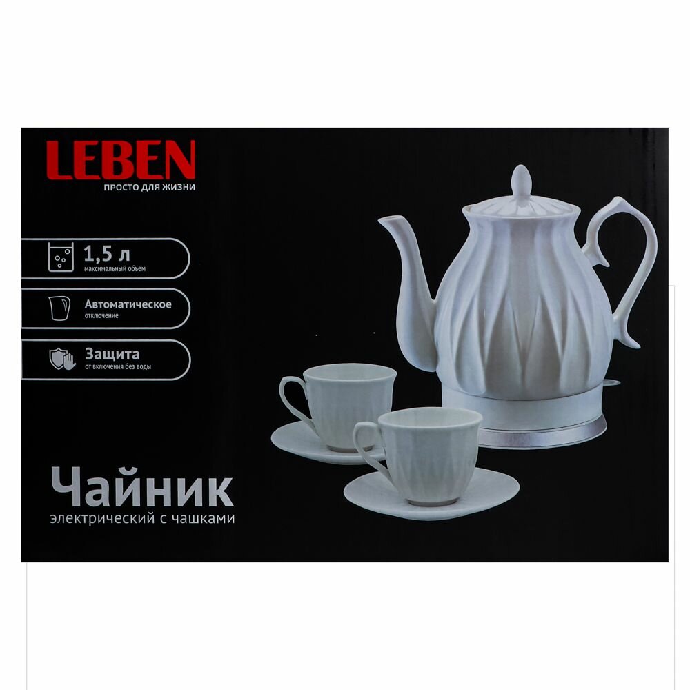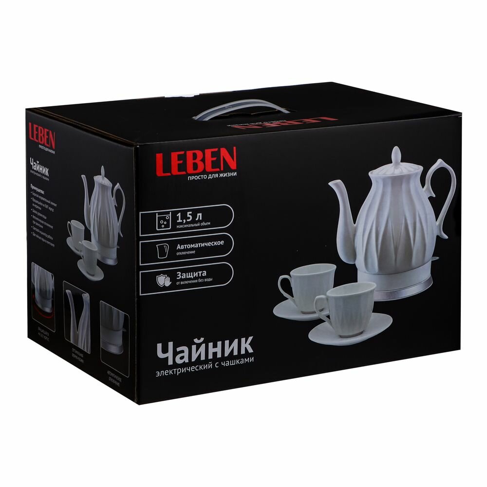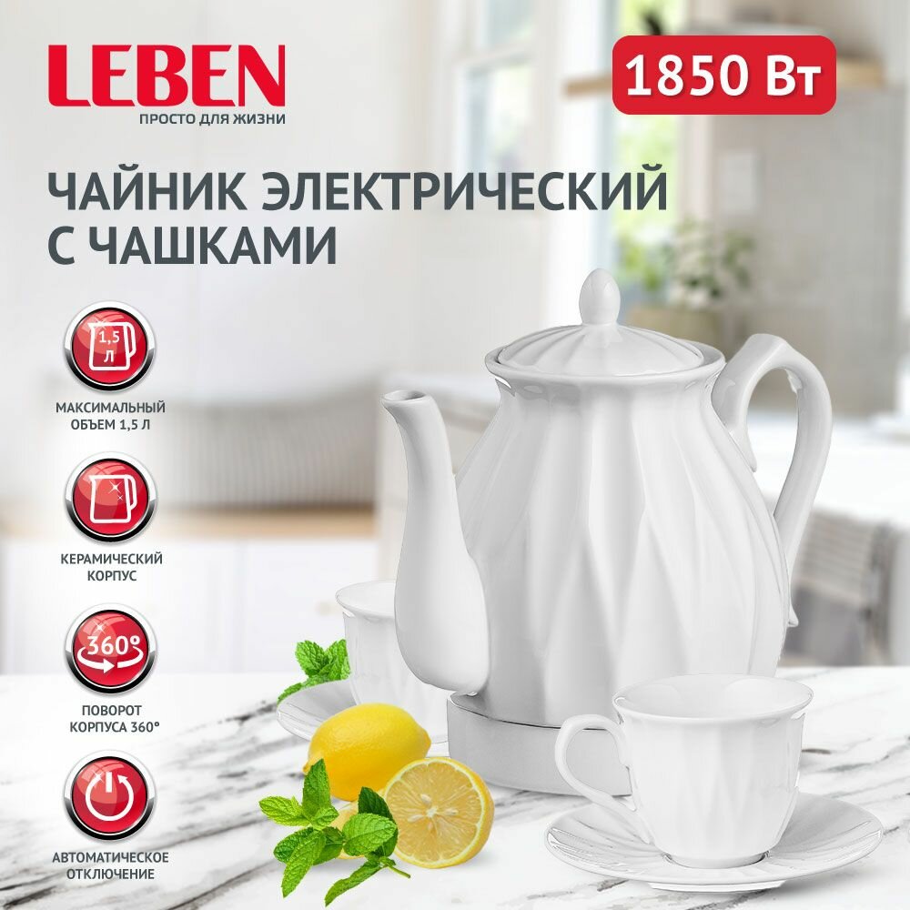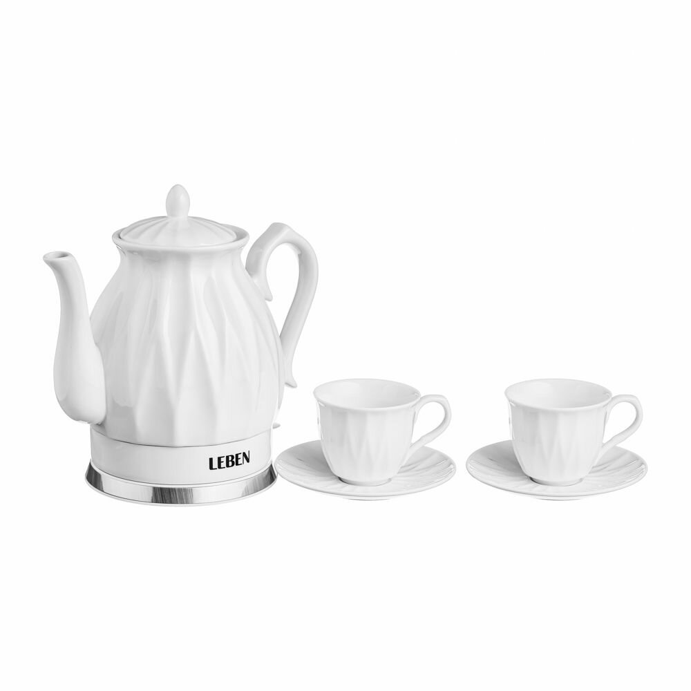 LEBEN Чайный набор электрический с чашками керамика 1,5 л, белый