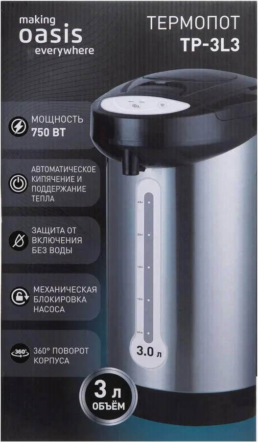 Термопот электрический электрочайник 3 л making Oasis everywhere TP-3L3, 750 Вт