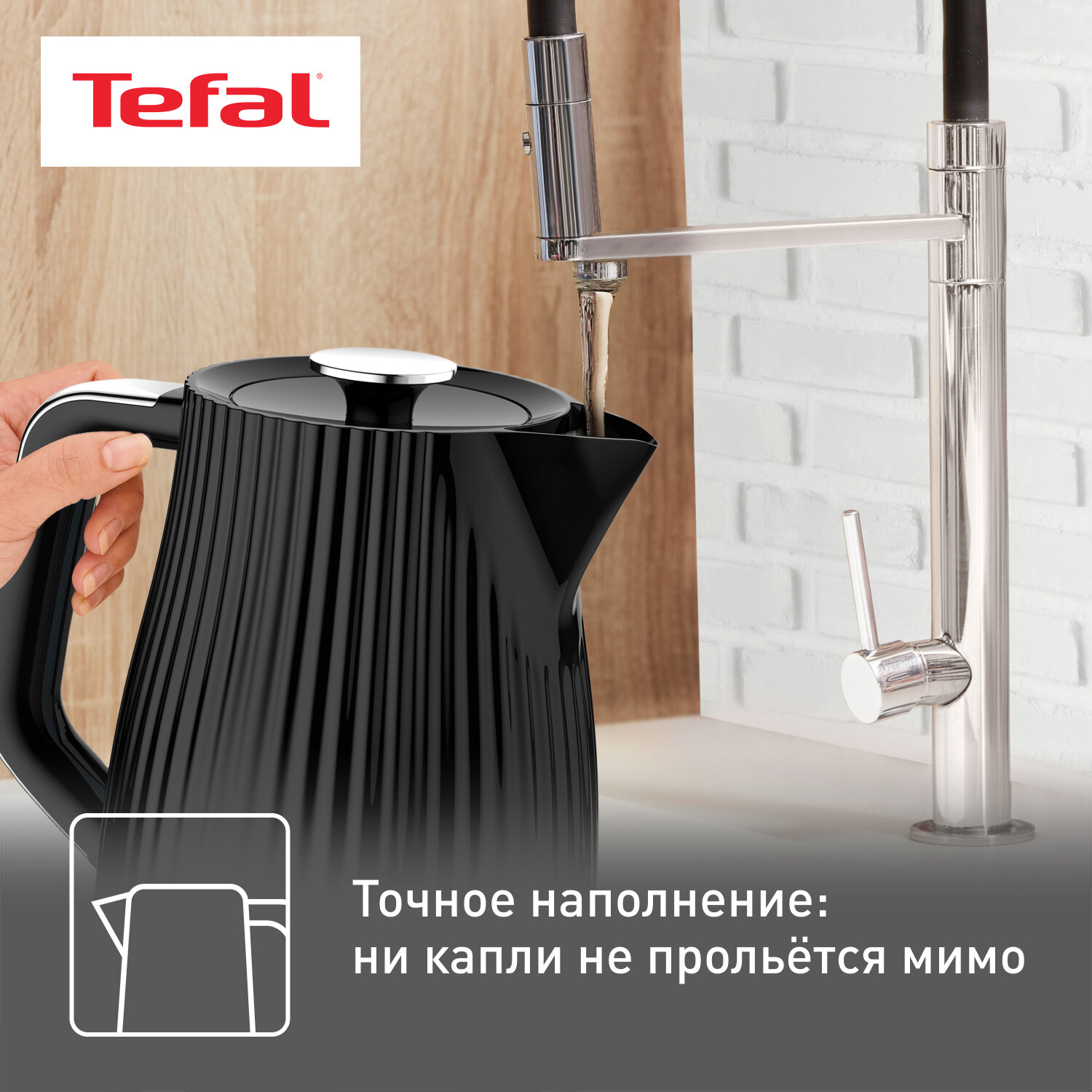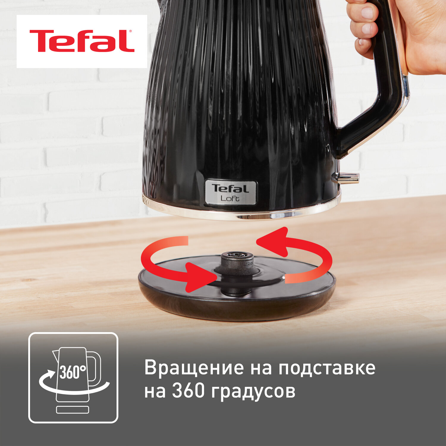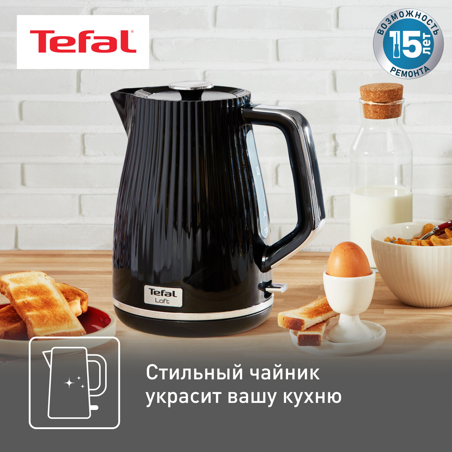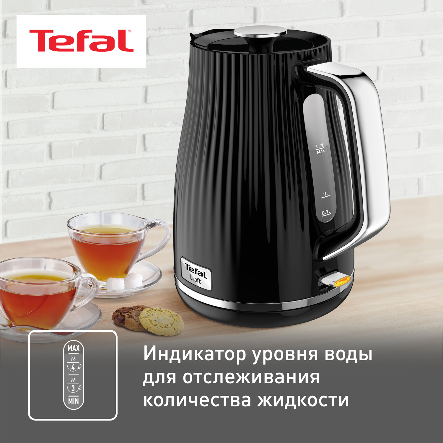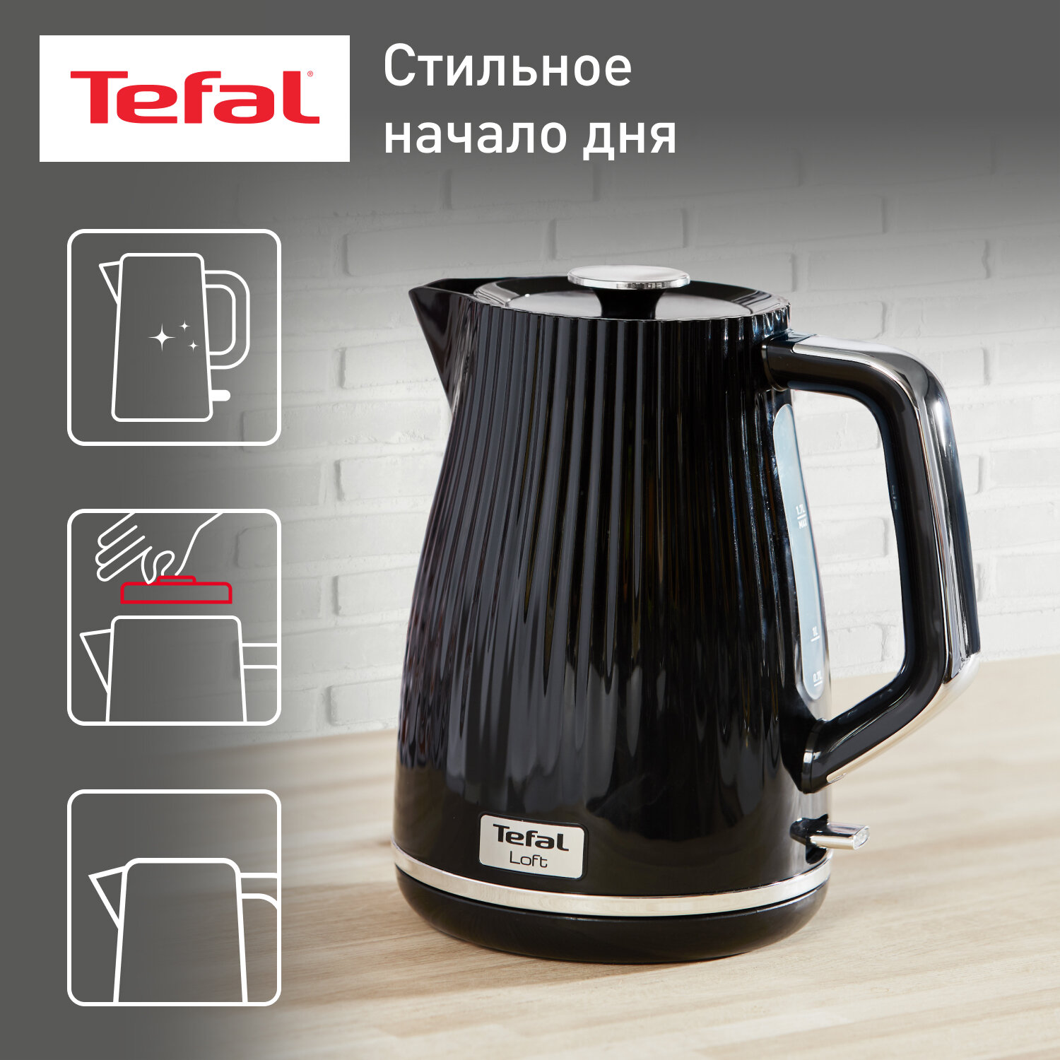 Чайник электрический Tefal Loft KO250830, черный, мощность 2400 Вт, объем 1.7 л, автовыключение