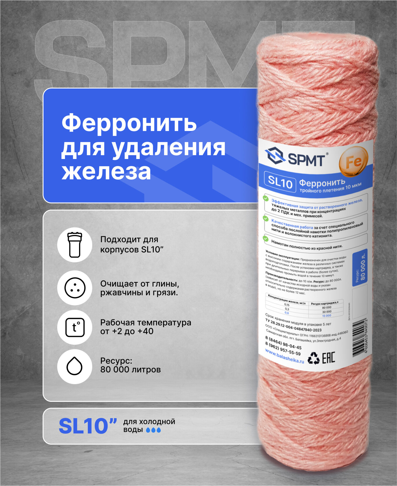 Картридж из ионообменной нити для фильтра механической очистки воды, SL10 (254ммх63мм), поры 10мкм, 1шт интересное: