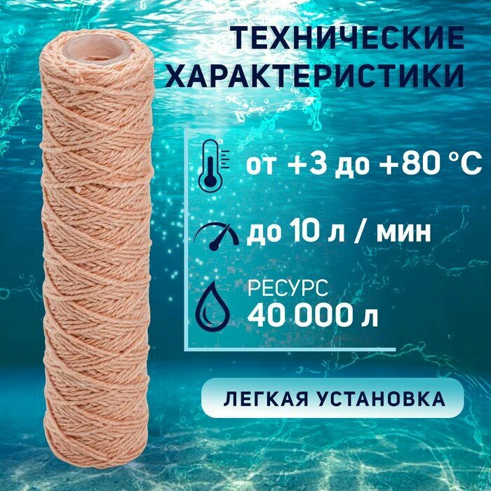 Картридж фильтра для очистки воды нитяной от железа “Нептун” PSF-10SL 10мкм. Катионообменная красная нить. Обезжелезивание