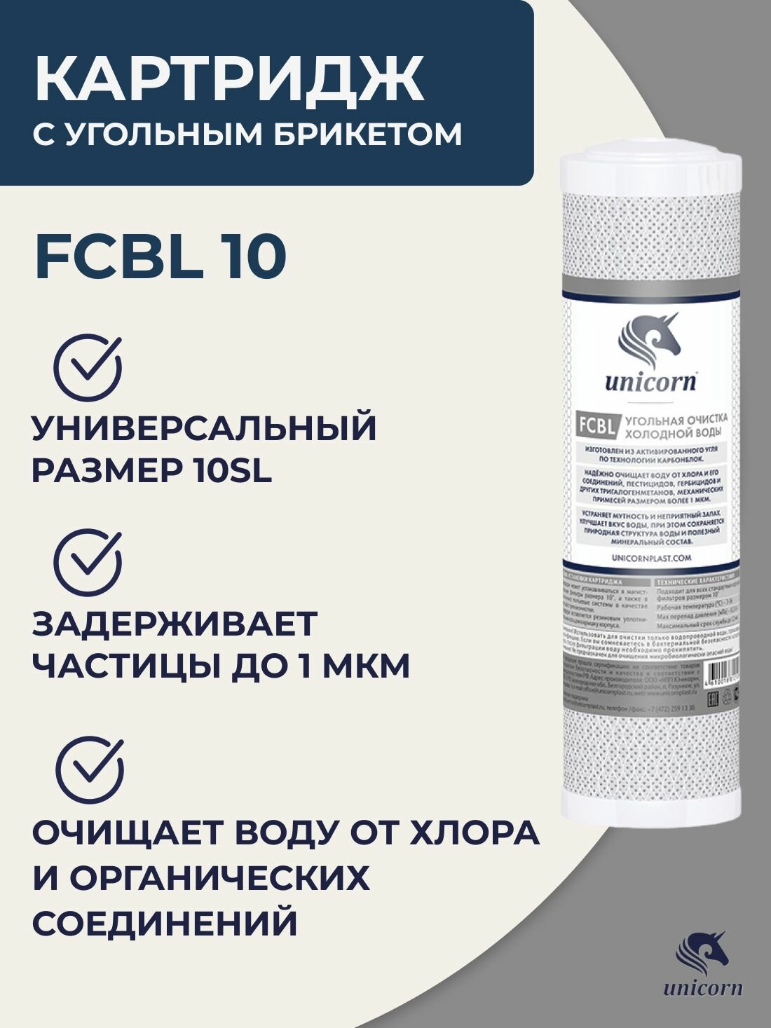Unicorn Картридж Unicorn FCB 10"SL, кокосовая скорлупа, устраняет хлор и органические соединения