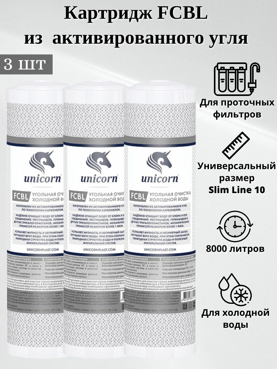 Unicorn Картридж Unicorn FCB 10"SL, кокосовая скорлупа, устраняет хлор и органические соединения
