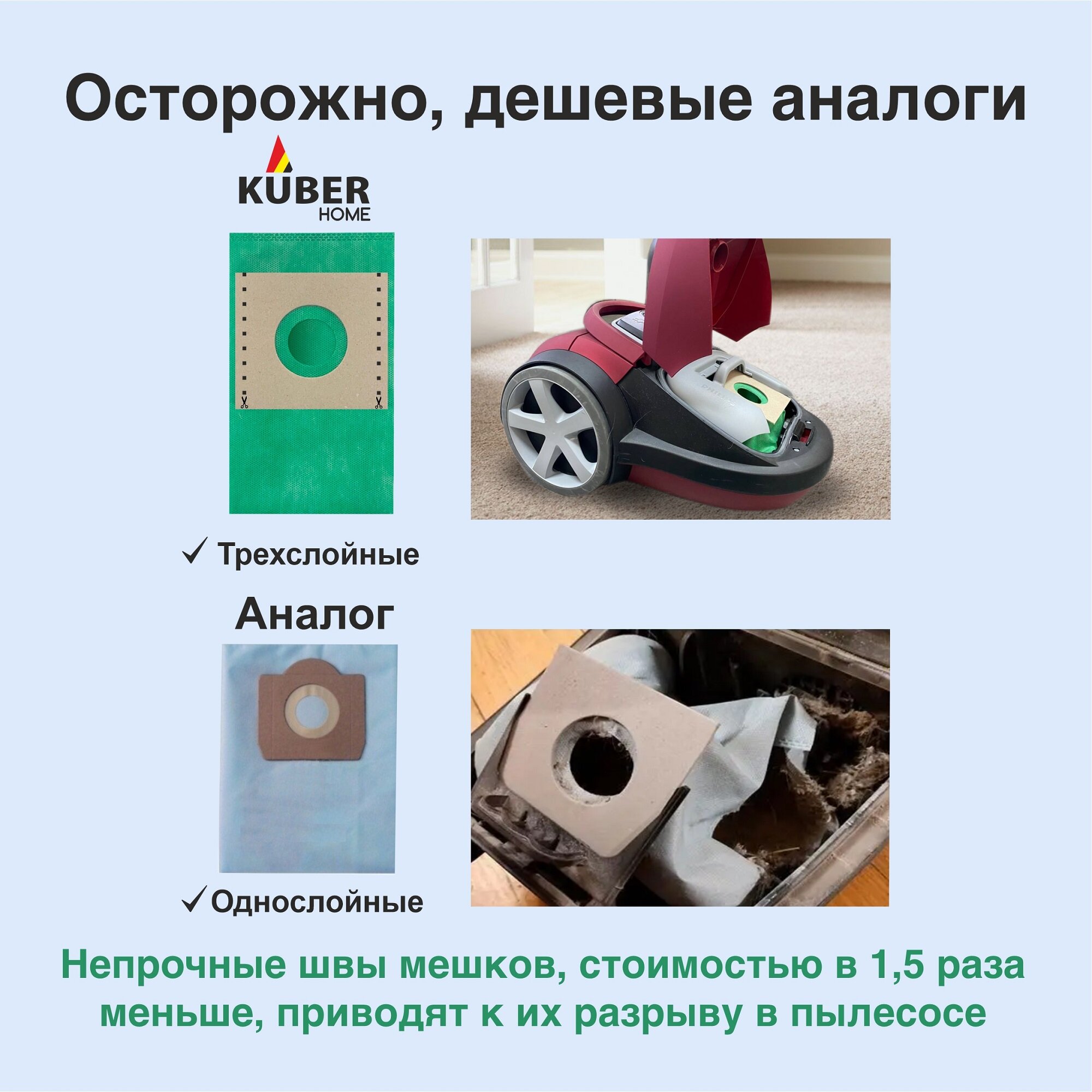 Пылесборники KUBER Home 2 литра для Samsung, Daewoo, LG, Bosch, Philips, Tefal, Miele
