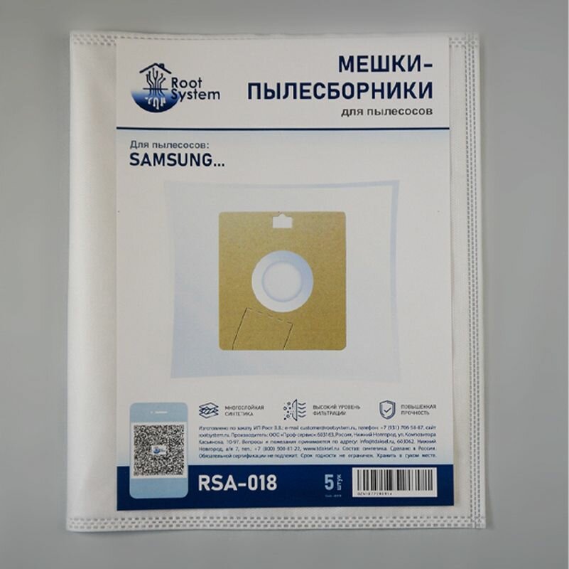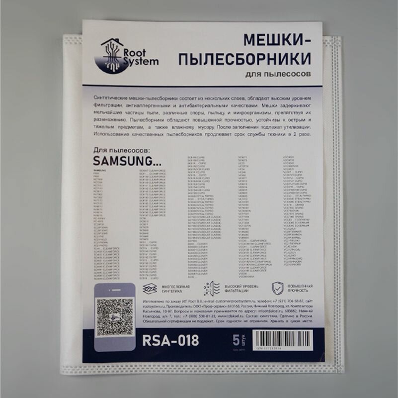 Купить Мешки для пылесосов SAMSUNG, тип: VP-77, одноразовые синтетические пылесборники RootSystem SM1(5), комплект 5 шт.