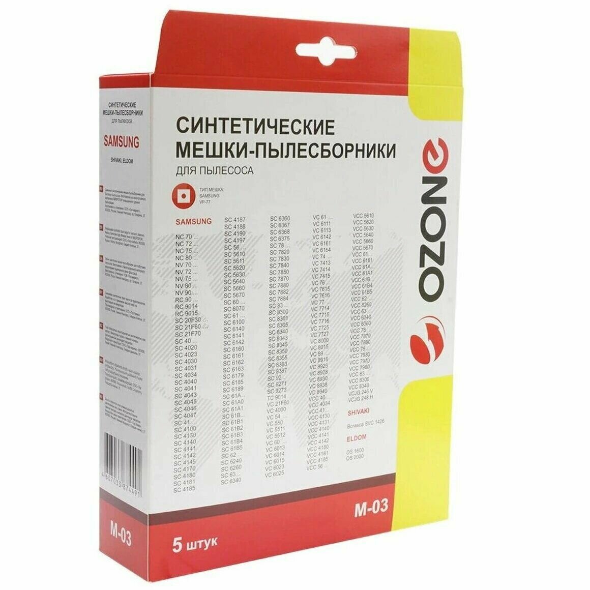 Пылесборник синтетический Ozone micron M-03, 5 шт (Samsung VP-77 ) OZONE 1533196 .
