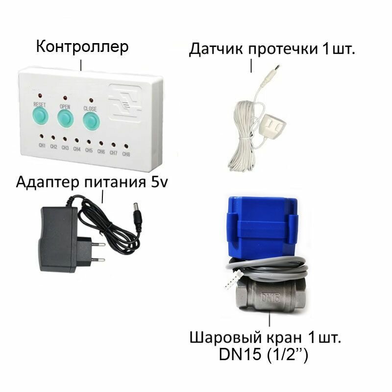 СохранитьСистема защиты от протечек воды (1 кран 1/2", 1 датчик 6 метров) Water Leakage Alarm для фильтра Родничок, дома или квартиры. интересное: