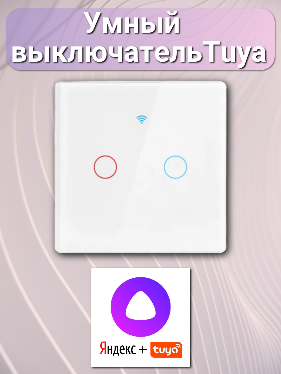 Умный выключатель WiFi Tuya сенсорный двухклавишный белый, для умного дома, голосовое управление работает с Яндекс Алисой интересное: