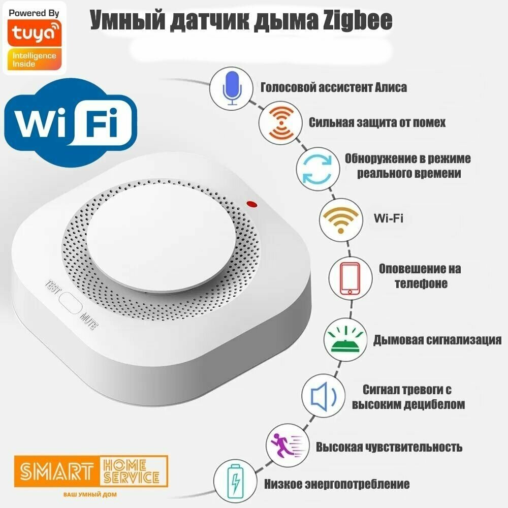 Датчик дыма Tuya Wi-Fi умный детектор дыма с сигнализацией, 80 дБ интересное: