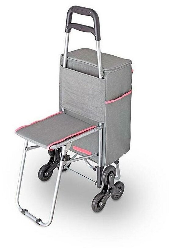 Колёсики 3шт каждой стороны, по принципу "револьвер" - для преодоления препятствий-выступов и невысоких ступеней. откидной табурет в конструкции - присесть передохнуть/подождать. Удобно пожилым в пользовании. |