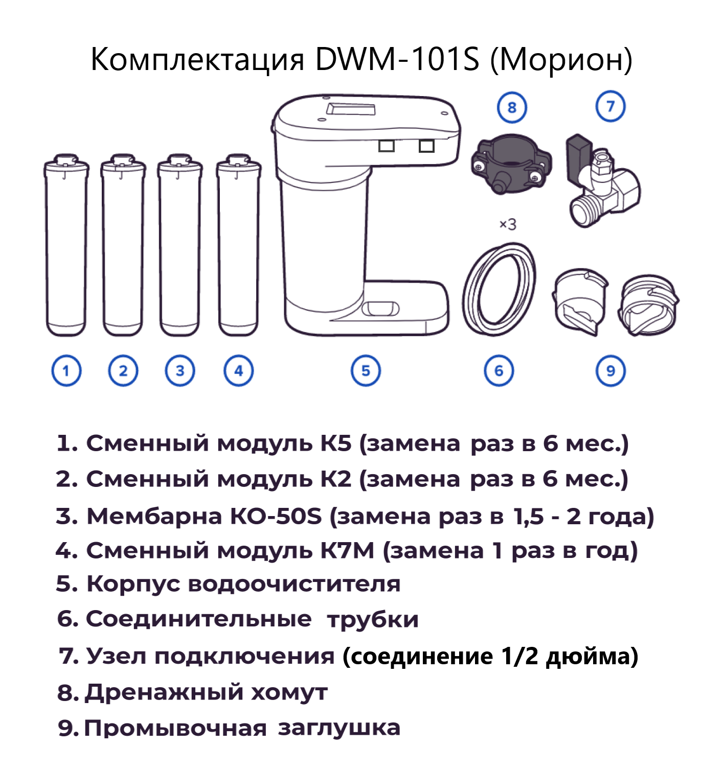 | В комплекте | кран / накопительная емкость / сменные кассеты |