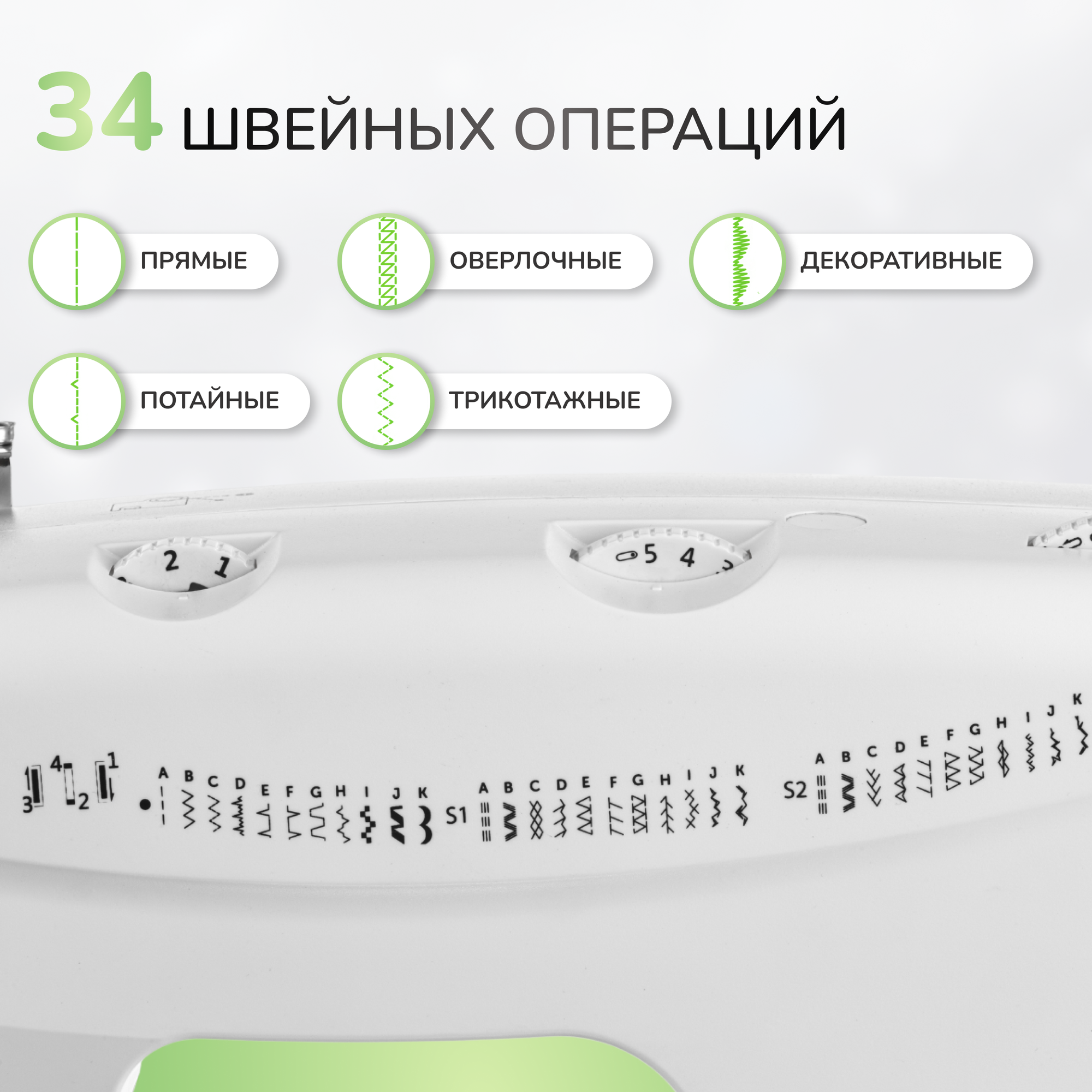 | Особенности конструкции | нитевдеватель, отсек для аксессуаров, подсветка, рукавная платформа |