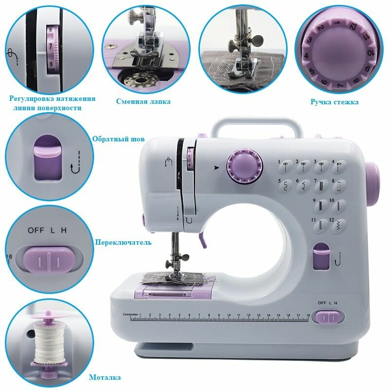 Электрическая швейная машинка с 12 стежками и педалю SM-505, интересное: