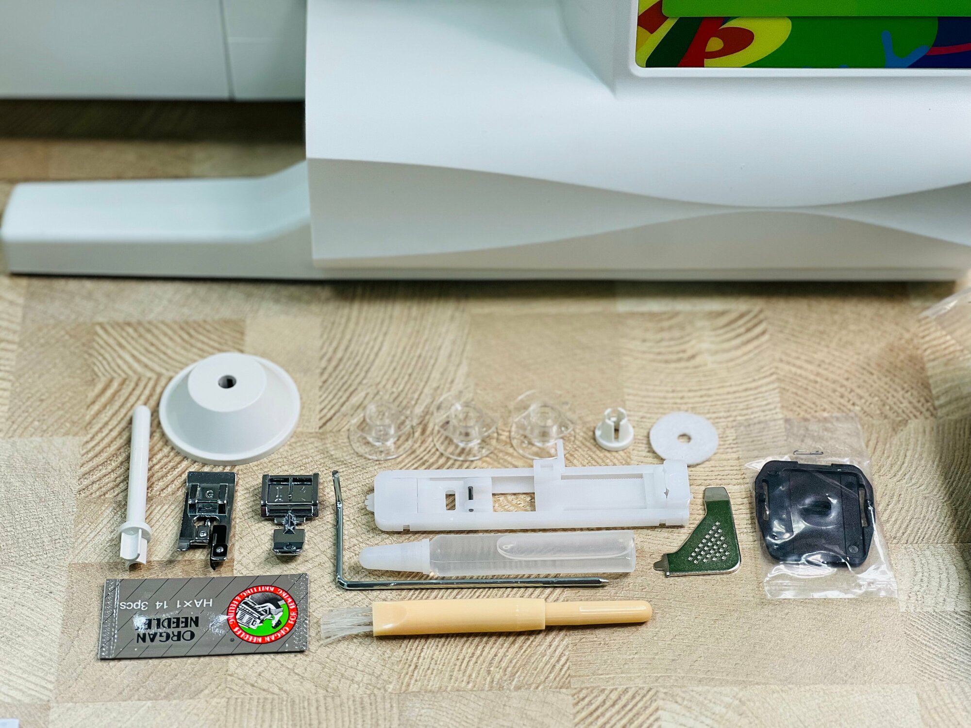 | Особенности | автоматический подъем лапки, двойная игла, мягкий чехол, работа с грубыми тканями, работа с тонкими тканями |