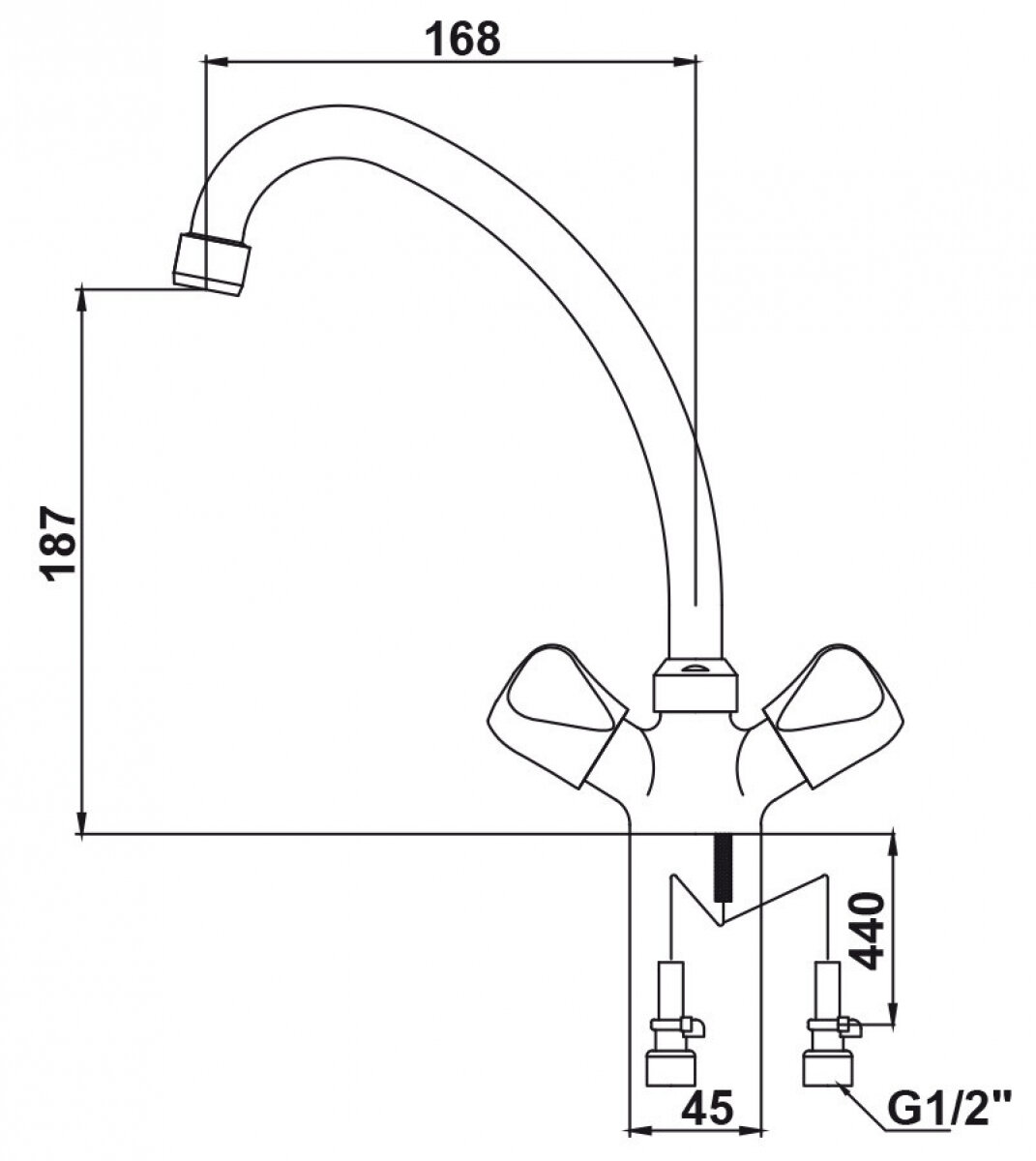 Смеситель для кухонной мойки KAISER Delta - 11093 (двухвентильный, цвет хром)