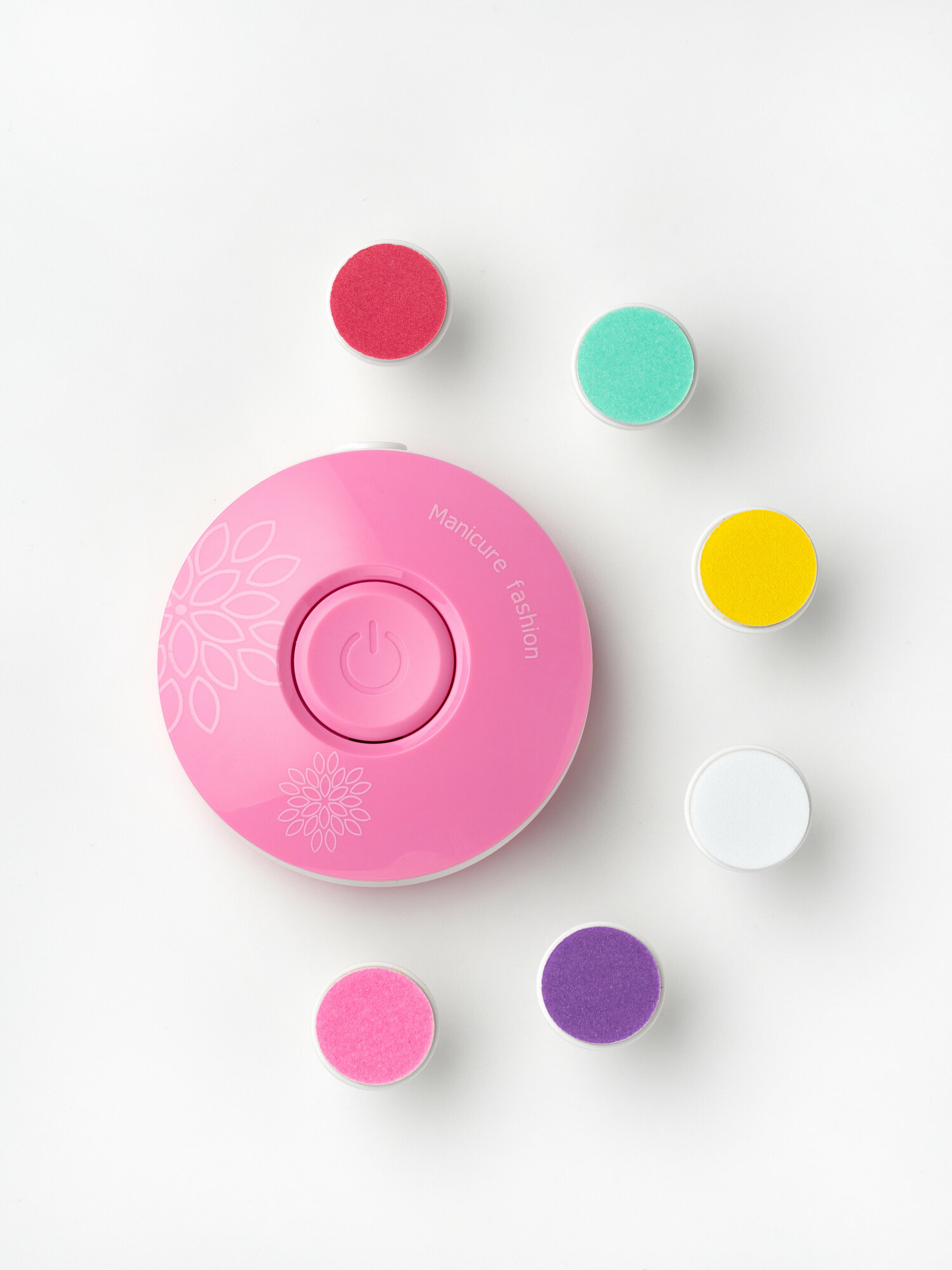Детский триммер для ногтей с 6 насадками и питанием от батареек розовый