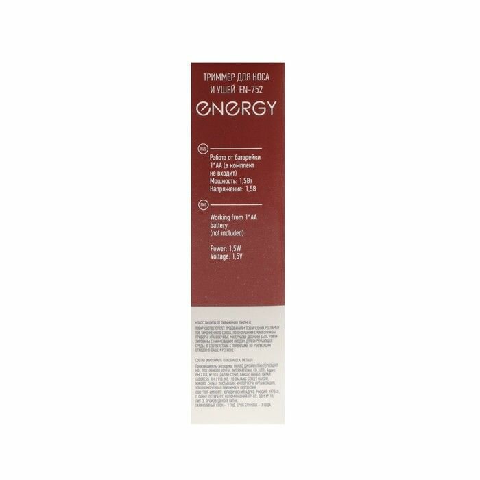 Триммер ENERGY EN-752, для носа/ушей, 1.5 Вт, 1хАА (не в комплекте)