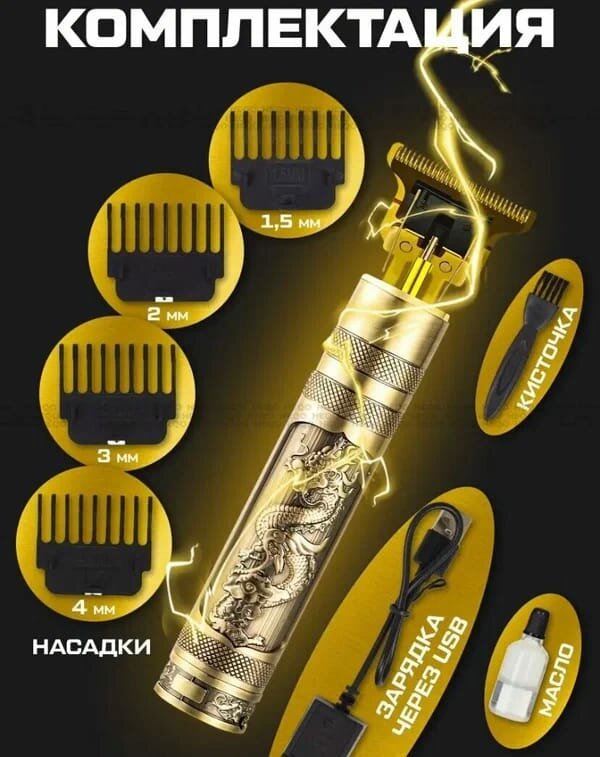 Купить Триммер для бороды и усов Дракон / 4 насадки / Триммер электрический / Машинка для стрижки волос / Family Dreams