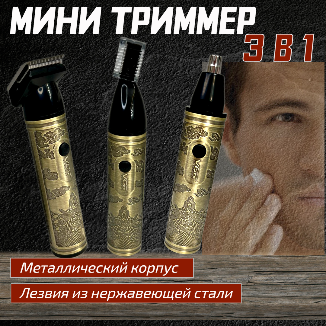 Купить Беспроводной Мини-Триммер 3 в 1 - для носа, бровей и ушей, для усов и бороды / металлический корпус / компактный размер