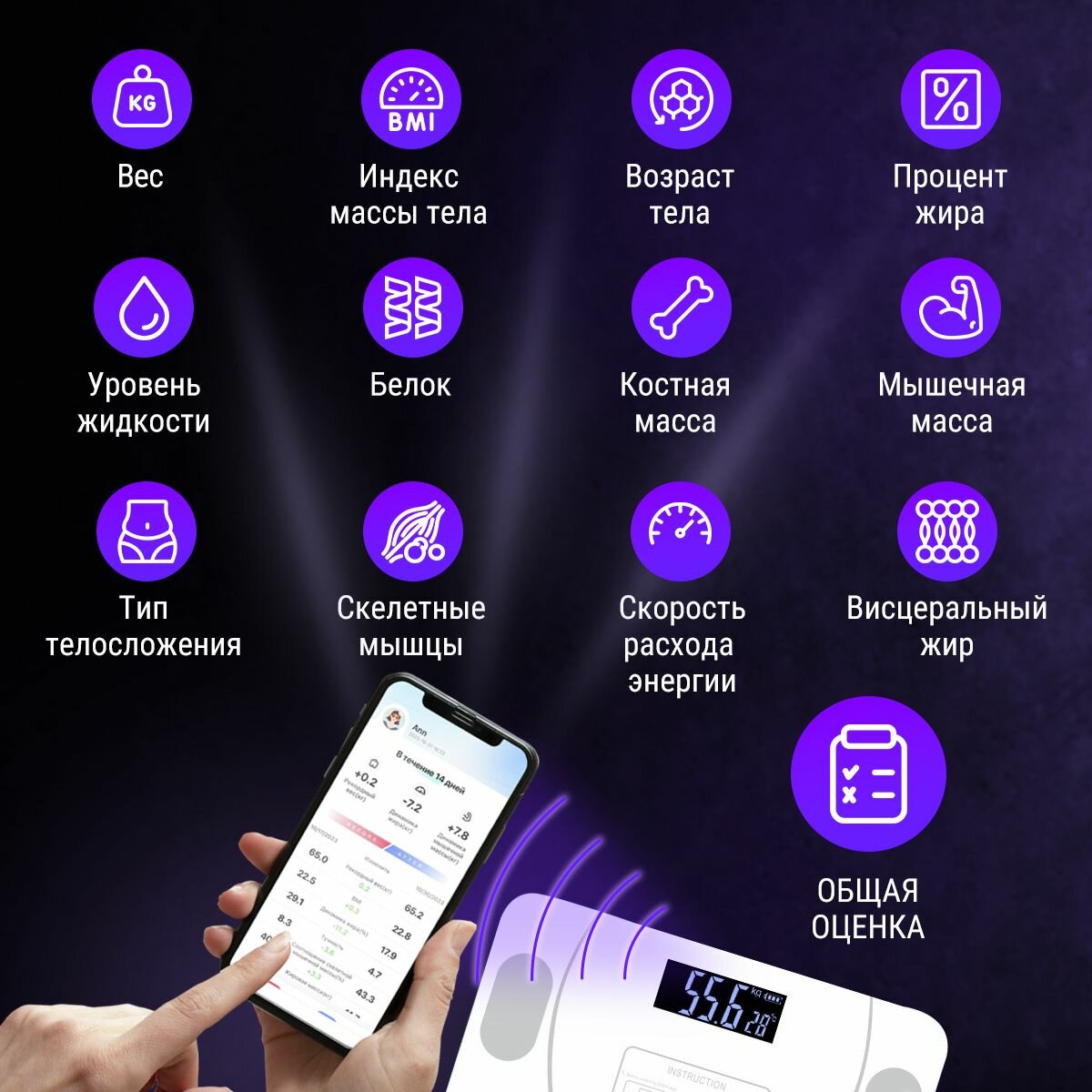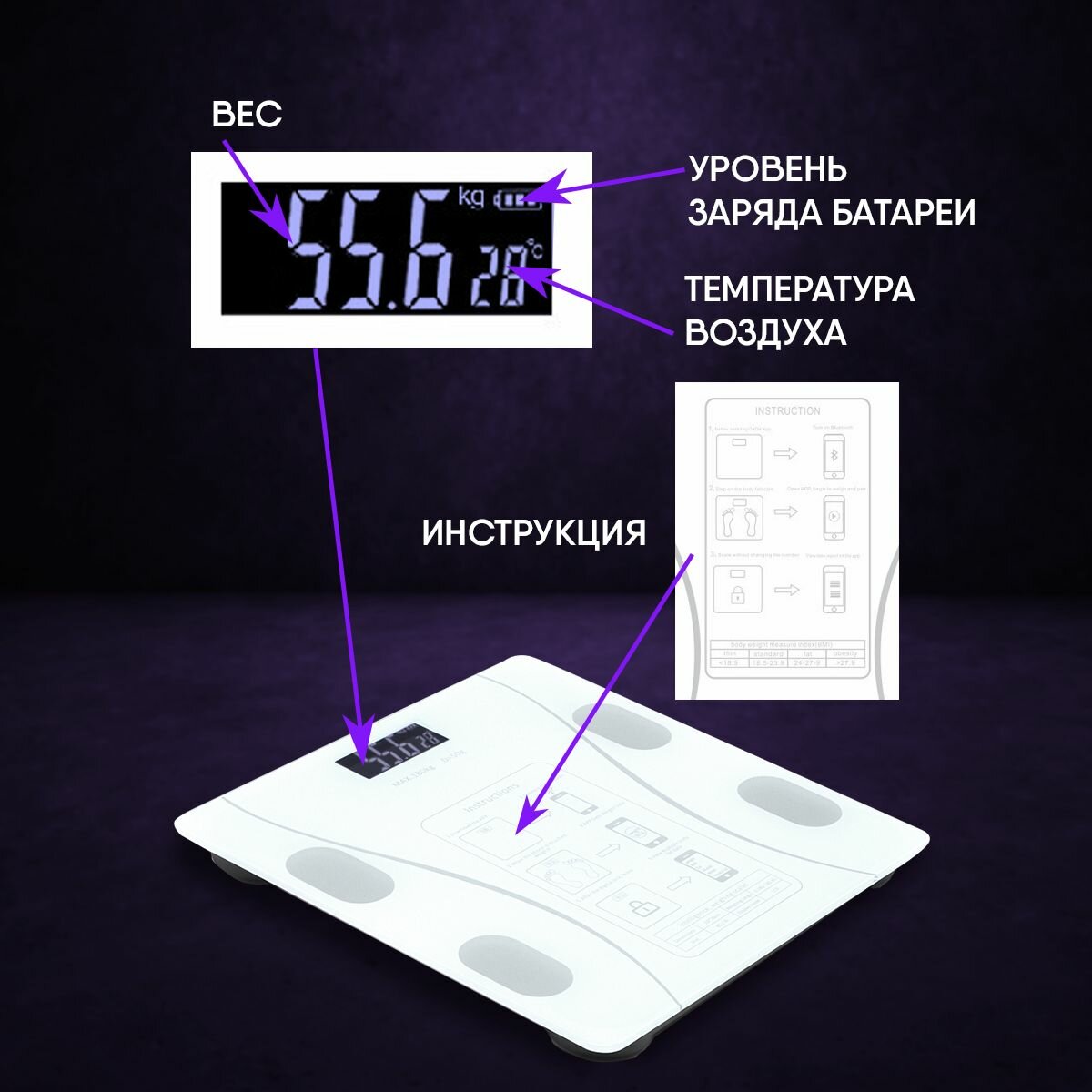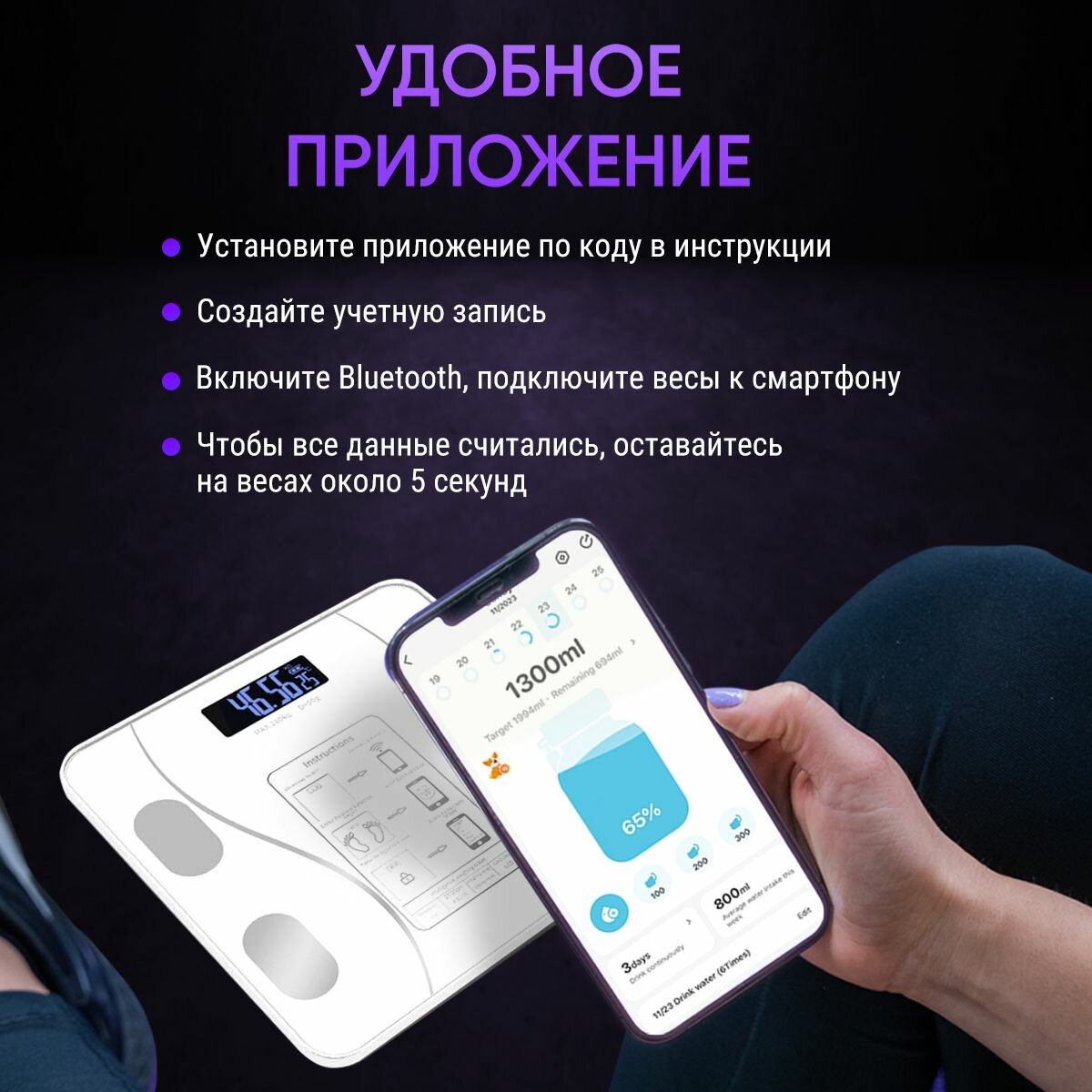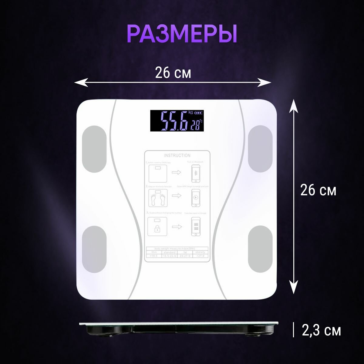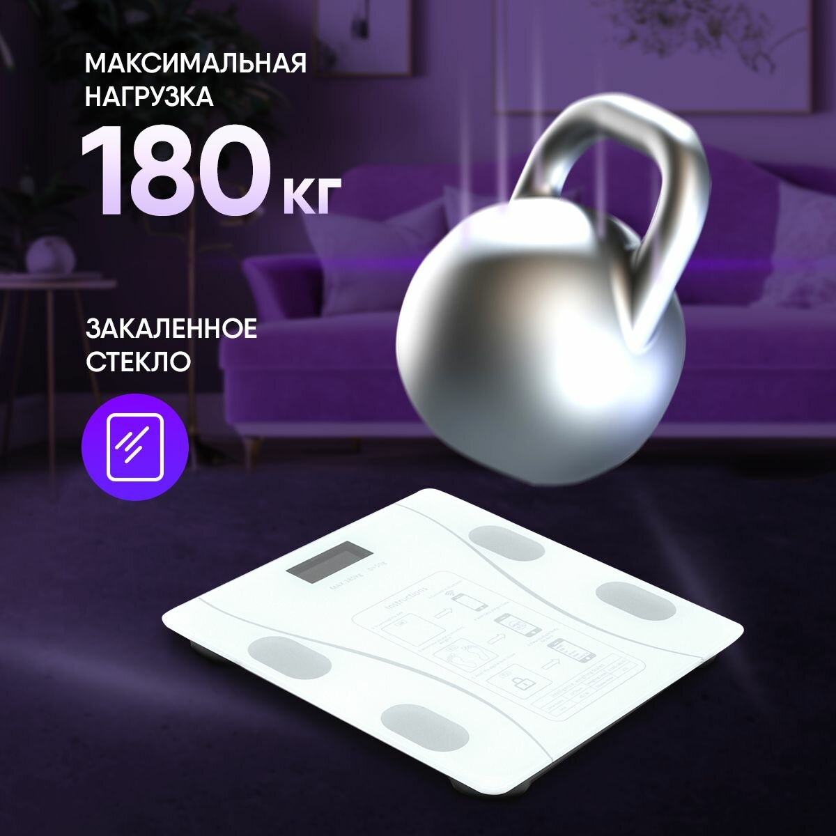 Весы напольные электронные умные с приложением Classmark до 180 кг точные, LCD-дисплей и bluetooth, стильные для дома, с индексом массы жира и белка, автоматическое отключение, белые интересное:
