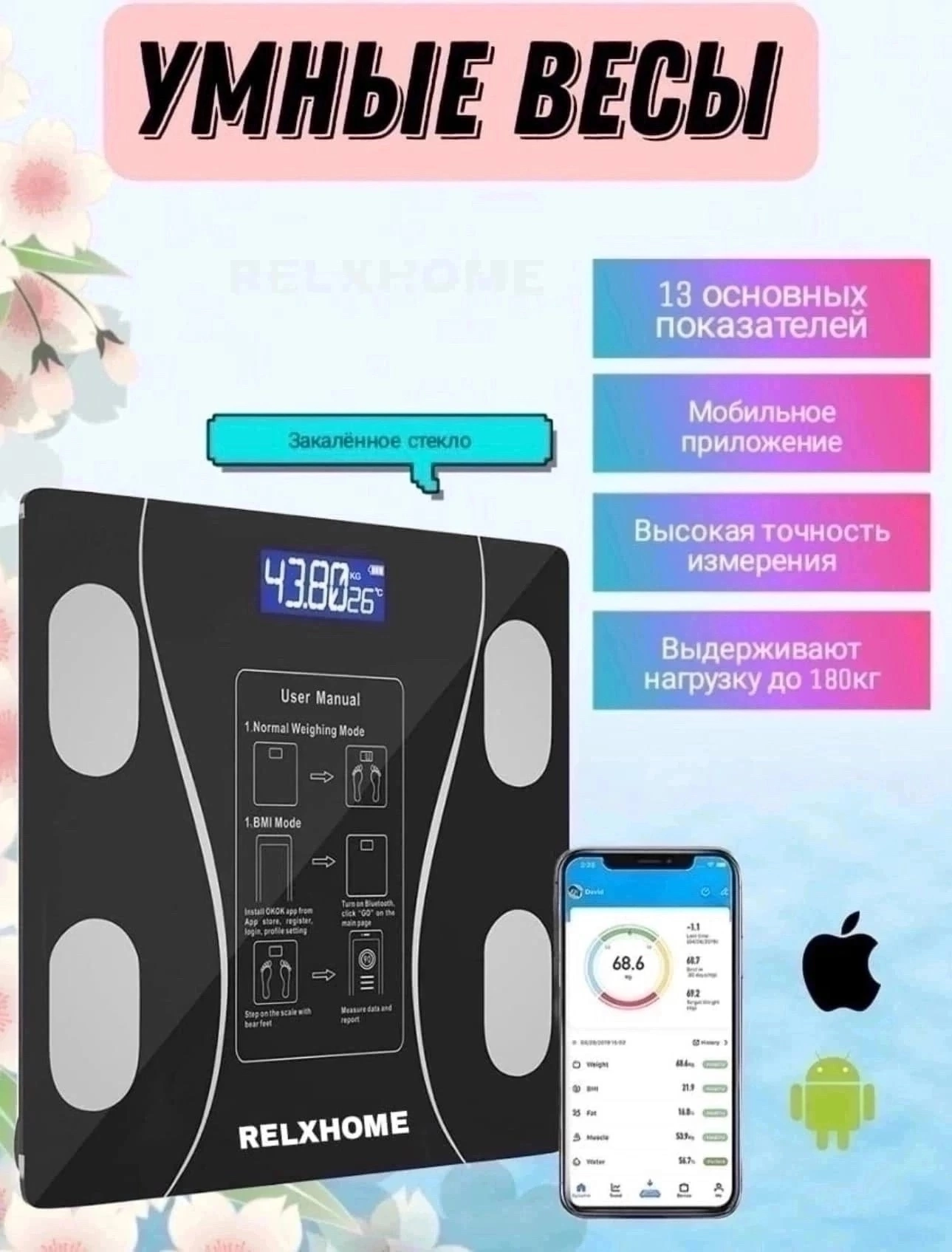 Напольные умные весы электронные напольные весы для iPhone, Xiaomi, Android, черные интересное:
