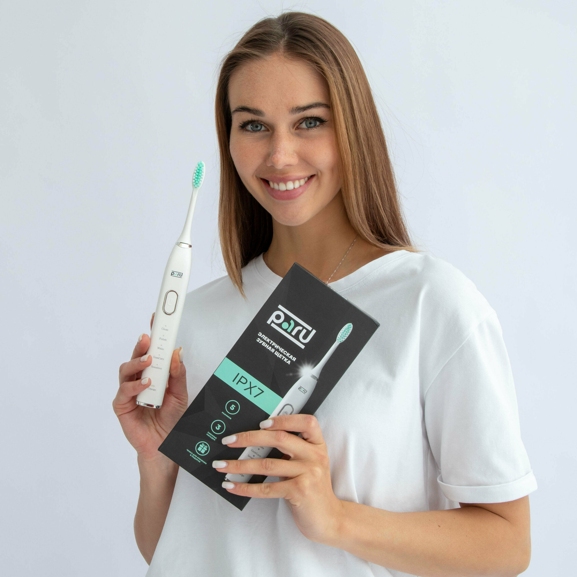 Подарочный набор Ультразвуковой скалер от зубного камня Отбеливание зубов Электрическая зубная щетка PARU, белая интересное: